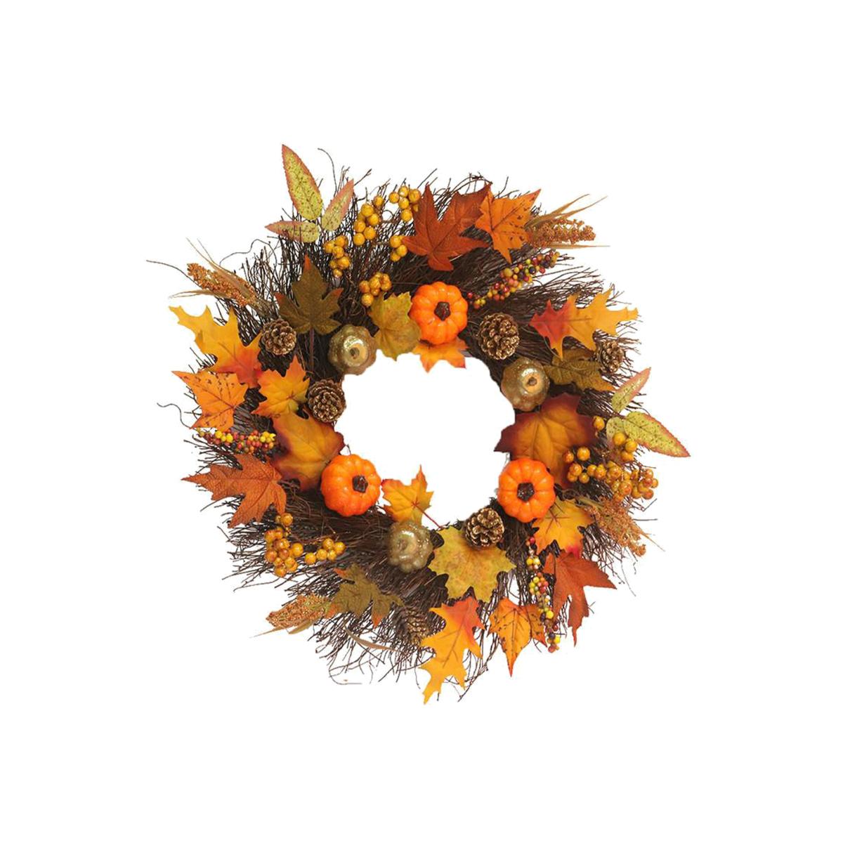 Artificial Autumn Prelit Wreath Decorations - Orange