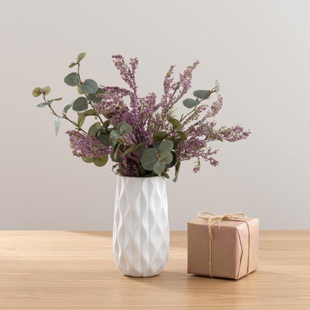 This artificial berry and eucalyptus bouquet in a modern white vase makes for a versatile statement piece that works well across contemporary and minimalist interiors. I love how the neutral tones of the foliage can complement both muted colour schemes and more vibrant settings. For styling, try grouping it alongside other similar neutrally coloured accessories or place it as a focal point on a coffee table or sideboard. Pairing it with the sea salt candle adds a cosy, inviting touch, perfect for creating a relaxed atmosphere. Its maintenance-free nature makes it ideal for those who want lush-looking greenery without the fuss of watering or replacing cut flowers.