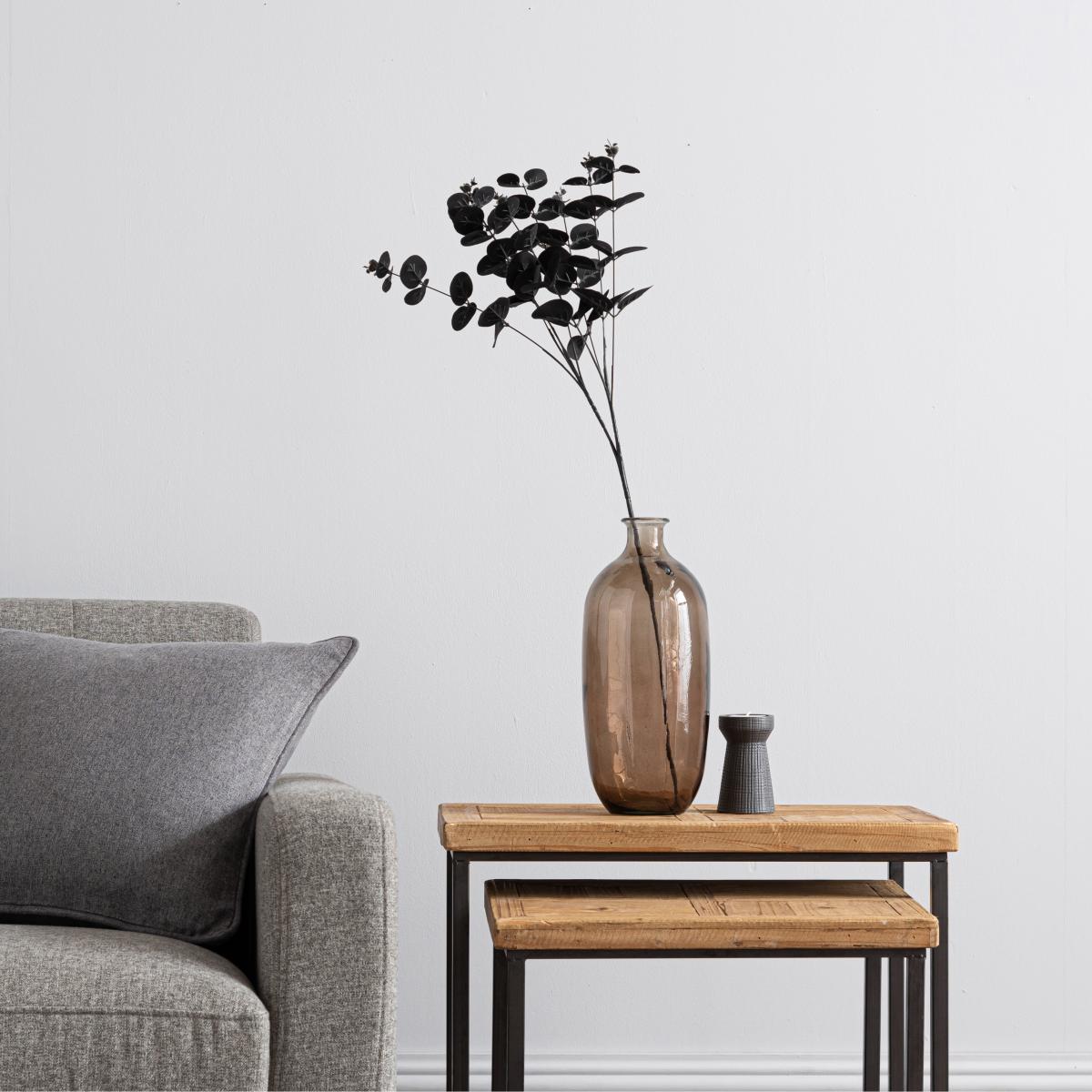 I love this black eucalyptus stem for adding a modern, moody touch to a variety of interiors. Its dark hue makes it perfect for contemporary or minimalist schemes, especially when paired with neutral tones or metallic accents. It’s versatile enough to work well in living spaces, dining areas, or even bathrooms, where it can bring a bit of natural texture without overwhelming the decor. Practical styling tips include placing it in a simple vase on a side table or shelf, or arranging a few stems in a tall container for visual interest. Because it’s artificial, you can enjoy its bold look year-round without the fuss of upkeep, making it an effortless way to elevate your interior aesthetic.