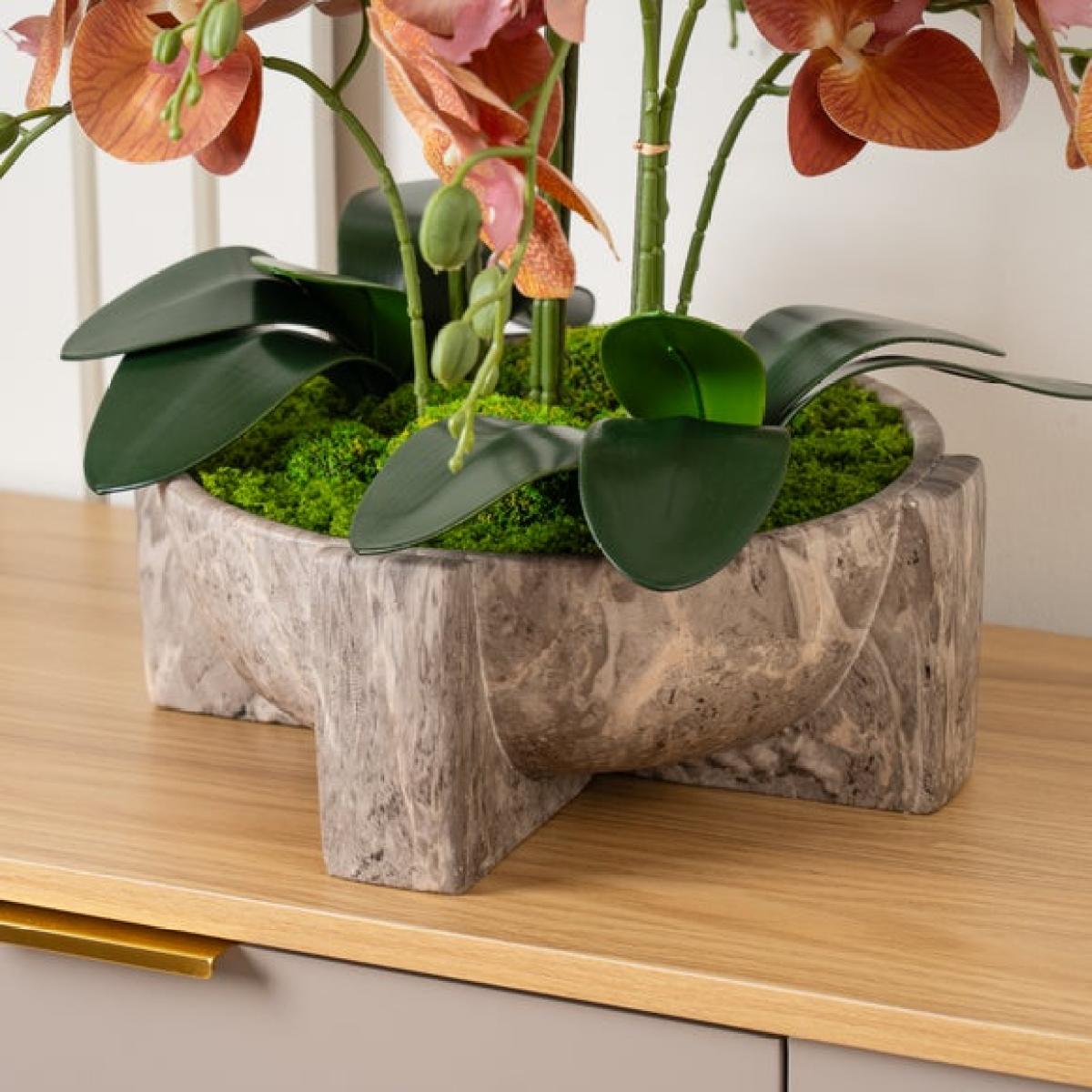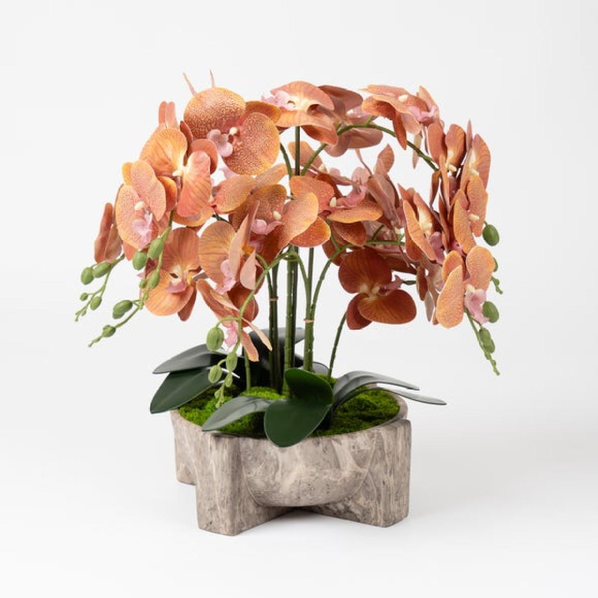 Artificial Brown Orchid in Travertine Footed Plant Pot