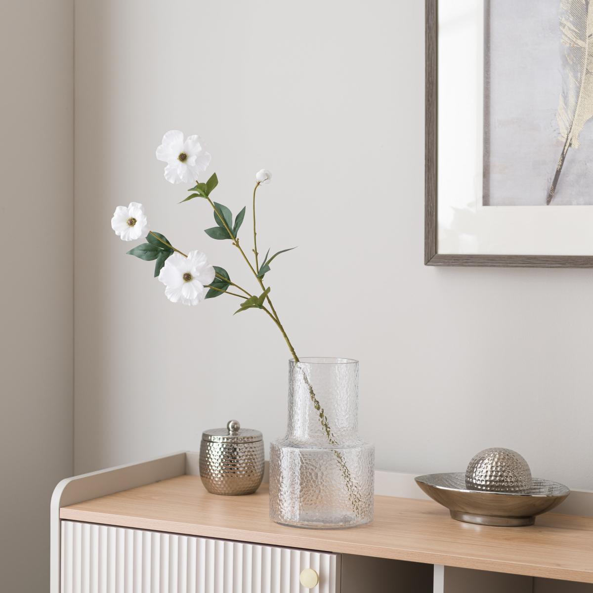 I love this faux butterfly ranunculus stem for its versatility and realistic appearance, making it a great choice for adding a touch of nature to any space without the fuss of maintenance. It works well in both modern and classic interiors, especially in light, airy schemes or monochrome palettes where subtle botanical accents can make a subtle statement. Practical styling tips include grouping a few stems together in a clear vase for a simple centrepiece, or placing one in a small jug on a shelf for added visual interest. It’s ideal for spaces where real flowers might not thrive or last, such as kitchens, bathrooms, or offices, and can be easily moved around to refresh your décor without concern for wilting or watering.