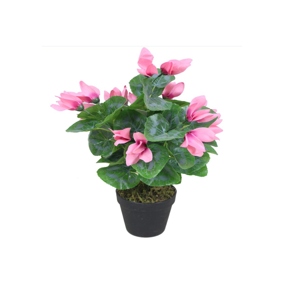 Artificial Cylamen Plant Pink. Artificial plant by Leaf Design UK. Not suitable for outdoor use. Potted in a plain plastic pot and is fully assembled. These trees are designed to be put inside a larger planter to display and you can add soil - gravel or bark around them to make them look even more realistic.