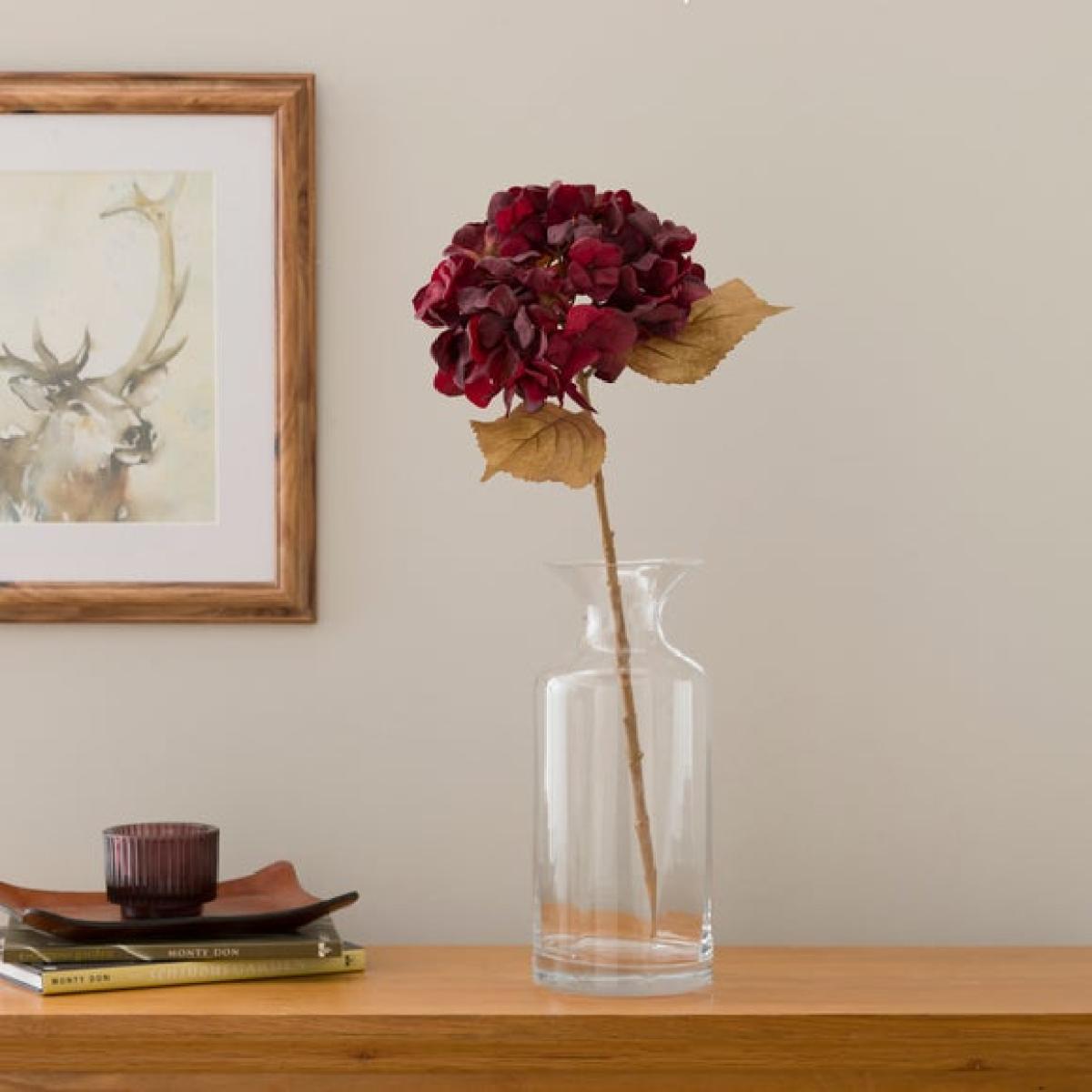* Made from plastic * Low maintenance * Realistic design * Hydrangea stem Celebrate the richness of the seasons with the Artificial Dried Look Red Hydrangea Stem. Its rustic tones and eye-catching colour create a stunning focal point in any room. Perfect on its own or paired with other florals, this stem offers year-round beauty with an autumnal feel.