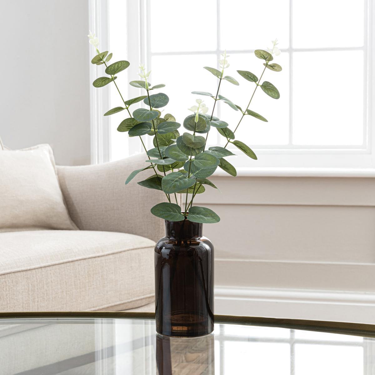 Featuring eye-catching Eucalyptus in a stunning black glass vase, the vibrant colours along with the highly realistic designs makes this the perfect addition to brighten up any room.