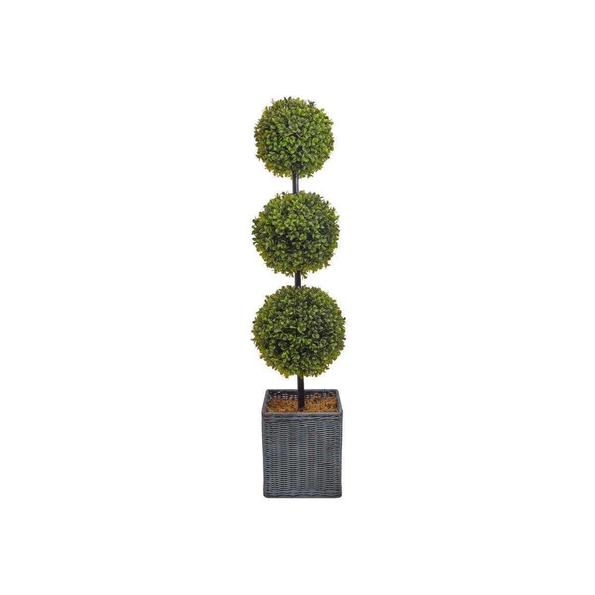 Artificial Faux Boxwood 3 Ball Topiary Tree Green and Grey