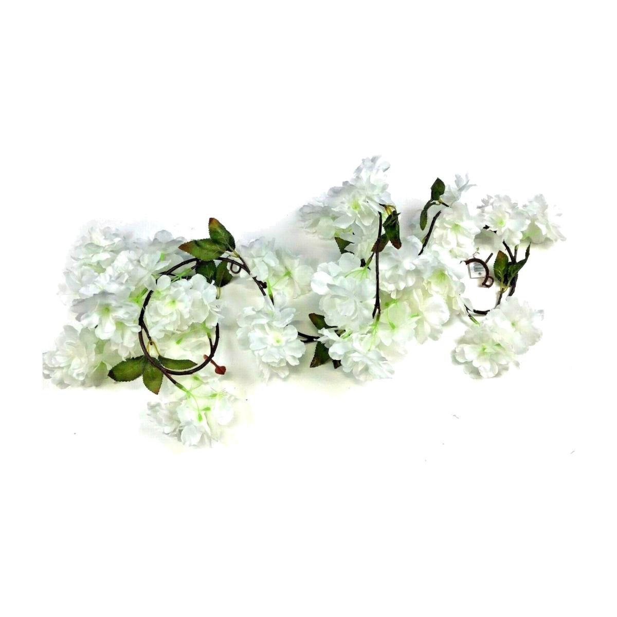 Artificial Faux Cherry Blossom Garland with White Flowers - White