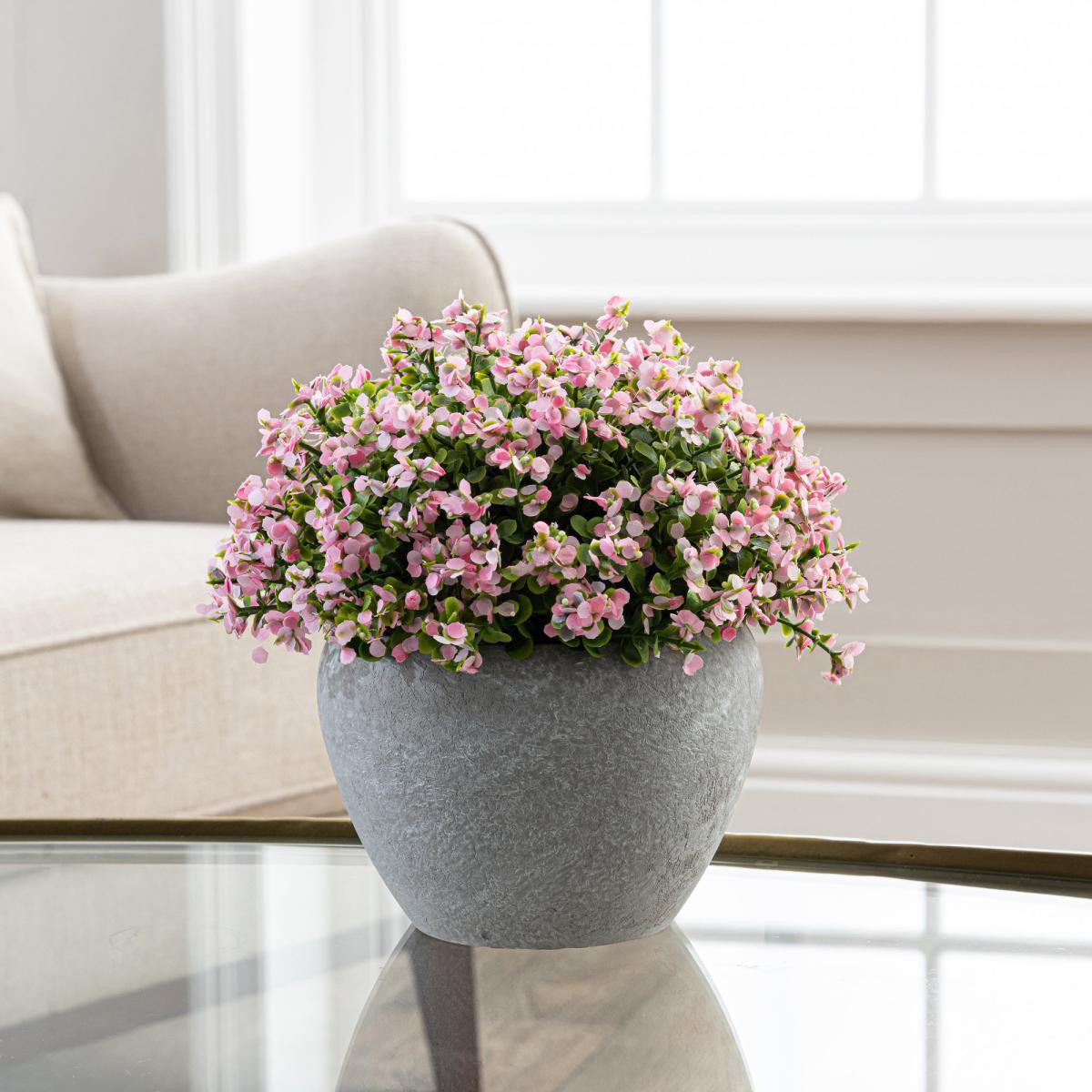 I love this pink artificial floral in the cement pot for its clean, contemporary look that instantly brightens up almost any space. It works particularly well in living rooms, kitchens, or even bathrooms where real plants might be tricky to maintain. The neutral grey pot provides a subtle backdrop that allows the soft pink flowers to stand out without overpowering the surroundings. For styling tips, try grouping it with other neutral or pastel-toned accessories for a cohesive look, or place it on a mantelpiece, console table, or windowsill to add colour and texture with minimal effort. It’s a great choice for anyone looking for a long-lasting, fuss-free floral display that still feels fresh and seasonal.