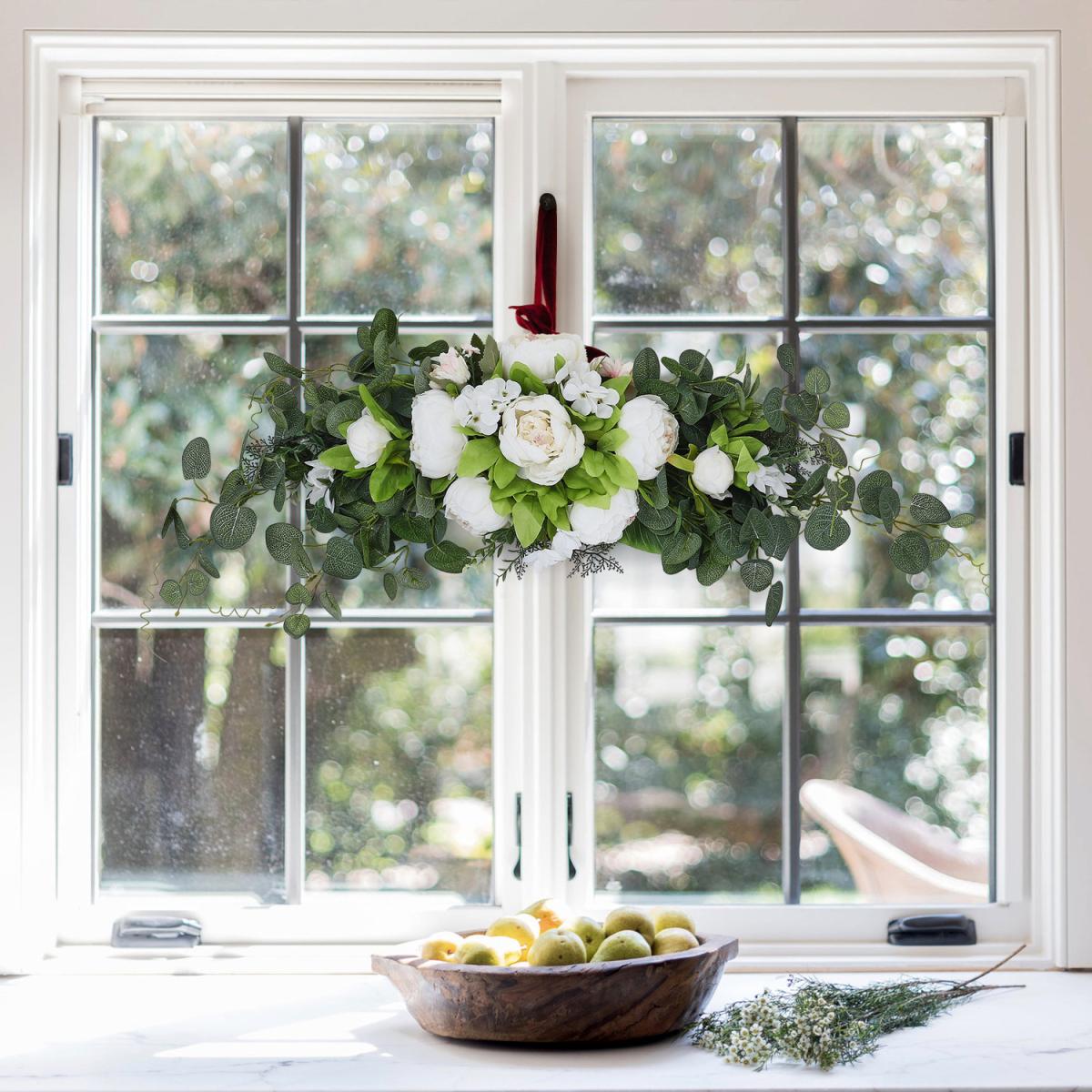 Made from faux silk and plastic, it is lifelike and upscale. The flower is covered with delicate petals and leaf, which is a unique and beautiful presence. Well made and colorful, long preservation time, does not wizen all over the year. Flower lovers who are allergic to pollen can enjoy them fearnessly. You can hang it on fireplace and the wall of your front door or living room, and anywhere as you like, adding artistic romantic atmosphere. Suitable for home, wedding, party, festival, making a perfect decoration, and used year after year.