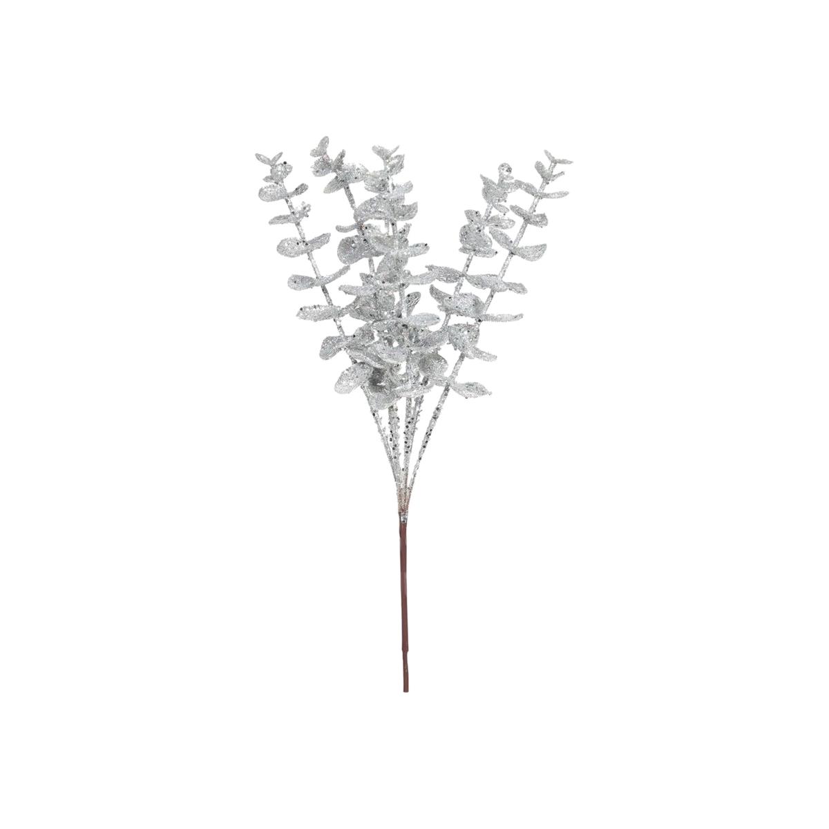 I love the glittery eucalyptus pick for its festive appeal and modern touch. Its silver shimmer makes it ideal for contemporary or minimalistic interiors, adding a touch of sparkle without overwhelming the space. It works well in a display bowl, a statement vase, or incorporated into centrepieces for seasonal or celebratory settings. For practical styling, try layering it with other neutral or metallic accents to create a balanced vignette, or place it in a clear glass container for a sleek, understated look. Because it’s artificial, it’s perfect for long-term use or high-traffic areas where longevity and low maintenance are key.