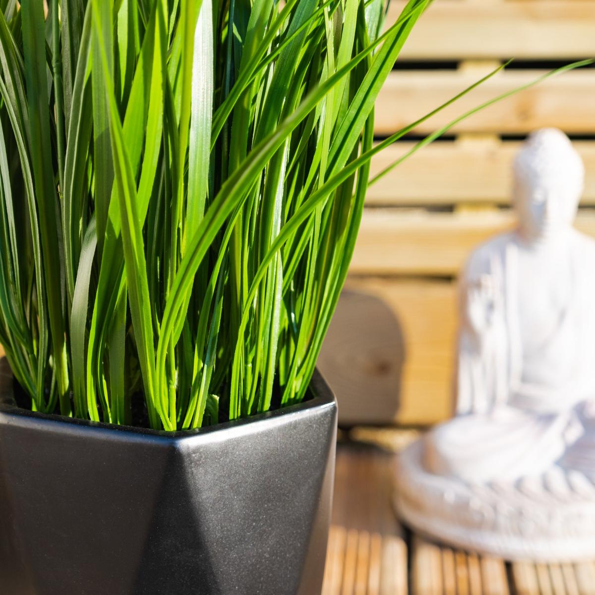 Artificial Grass in Geometric Plant Pot 80cm Black