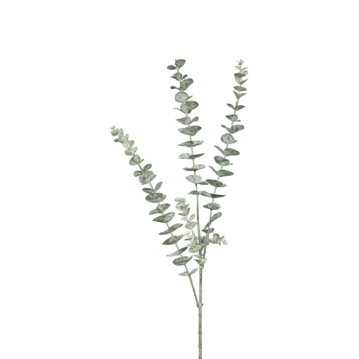 Embrace timeless elegance with this stunningly realistic artificial eucalyptus spray. Presented in a sophisticated, muted silver-grey tone, this piece perfectly captures the popular aesthetic of dried or preserved eucalyptus. The design features a single, detailed main stem that gracefully divides into three distinct heads, each adorned with the iconic, disc-shaped leaves of the eucalyptus plant. This spray is ideal for adding a touch of understated, modern texture to any space. Its delicate and airy structure makes it a beautiful standalone feature in a minimalist vase or a versatile filler component for floral arrangements, wreaths, and wedding bouquets. Enjoy the lasting beauty of this botanical favourite without any need for water or care.