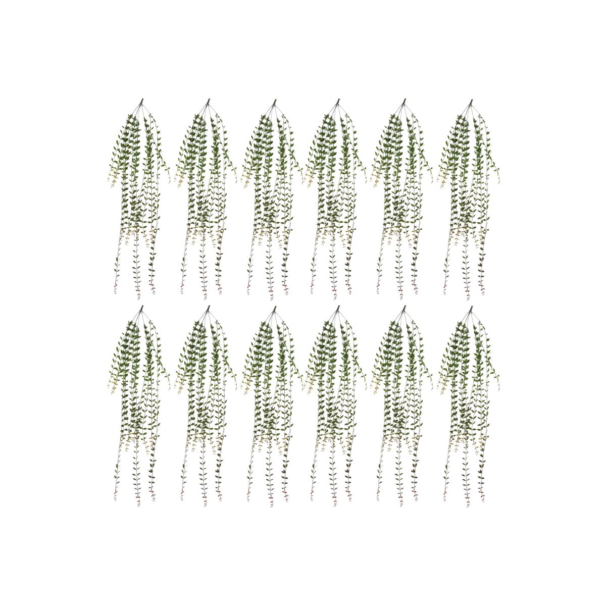 Extra long hanging string of pearls plant. Leaves and vines are plastic. width can vary depending on how it is arranged. These look particularly good hanging as a group for a realistic foliage effect.