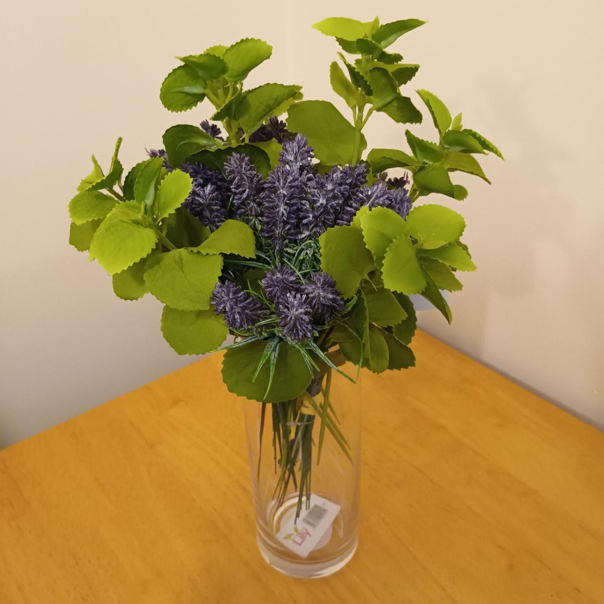 I love this faux lavender arrangement because it combines natural colour and texture without the maintenance of real flowers. It works well in both traditional and contemporary interiors, adding a touch of calm and freshness to kitchens, bathrooms, or living rooms. For styling, I’d suggest placing it in a simple vase on a side table, windowsill, or shelf to create an inviting, relaxed vibe. It’s also handy for low-light areas or spaces where fresh flowers might not last long. Pairing it with other greenery or rustic accessories can enhance its natural appeal, while using it as a standalone piece keeps a room looking effortlessly put together.