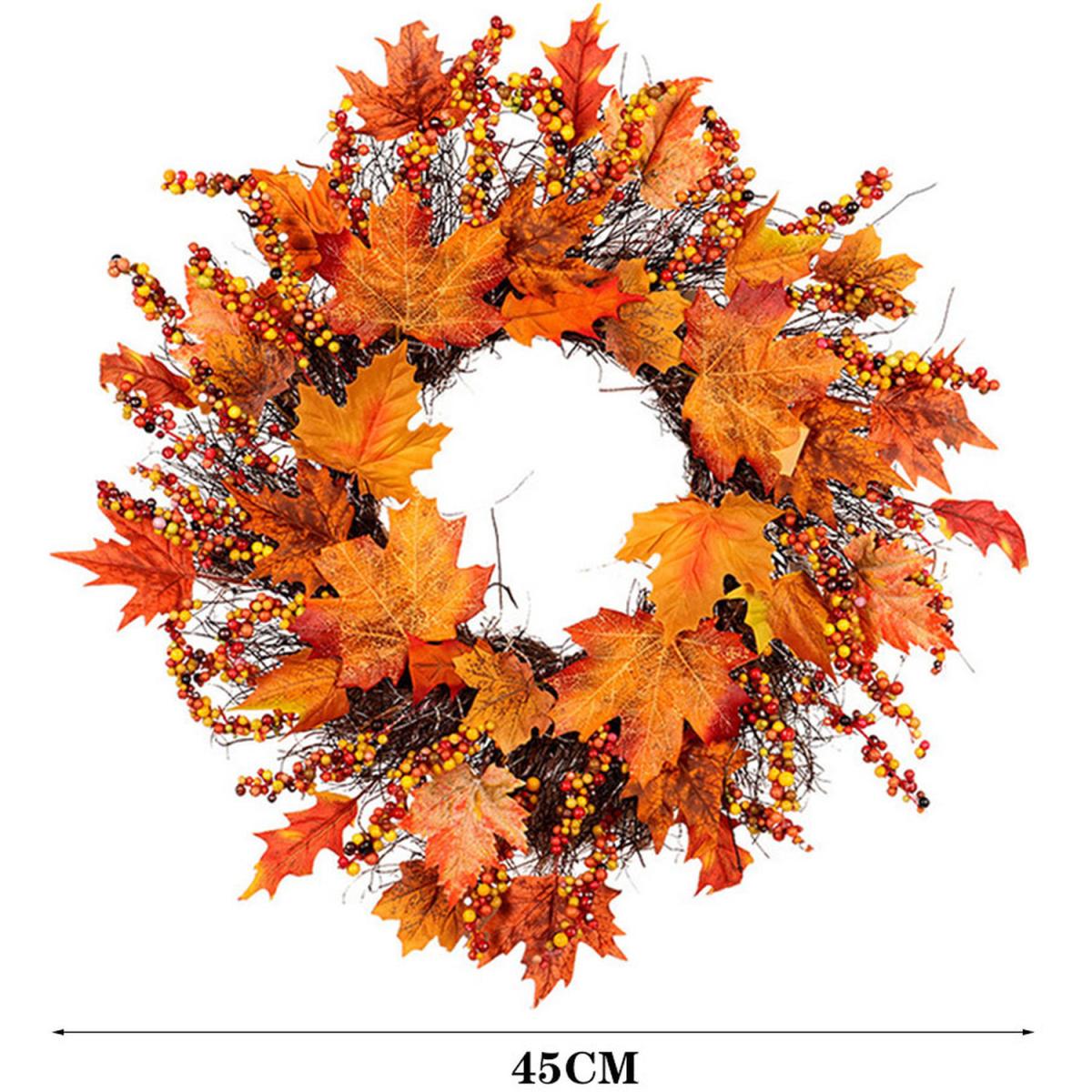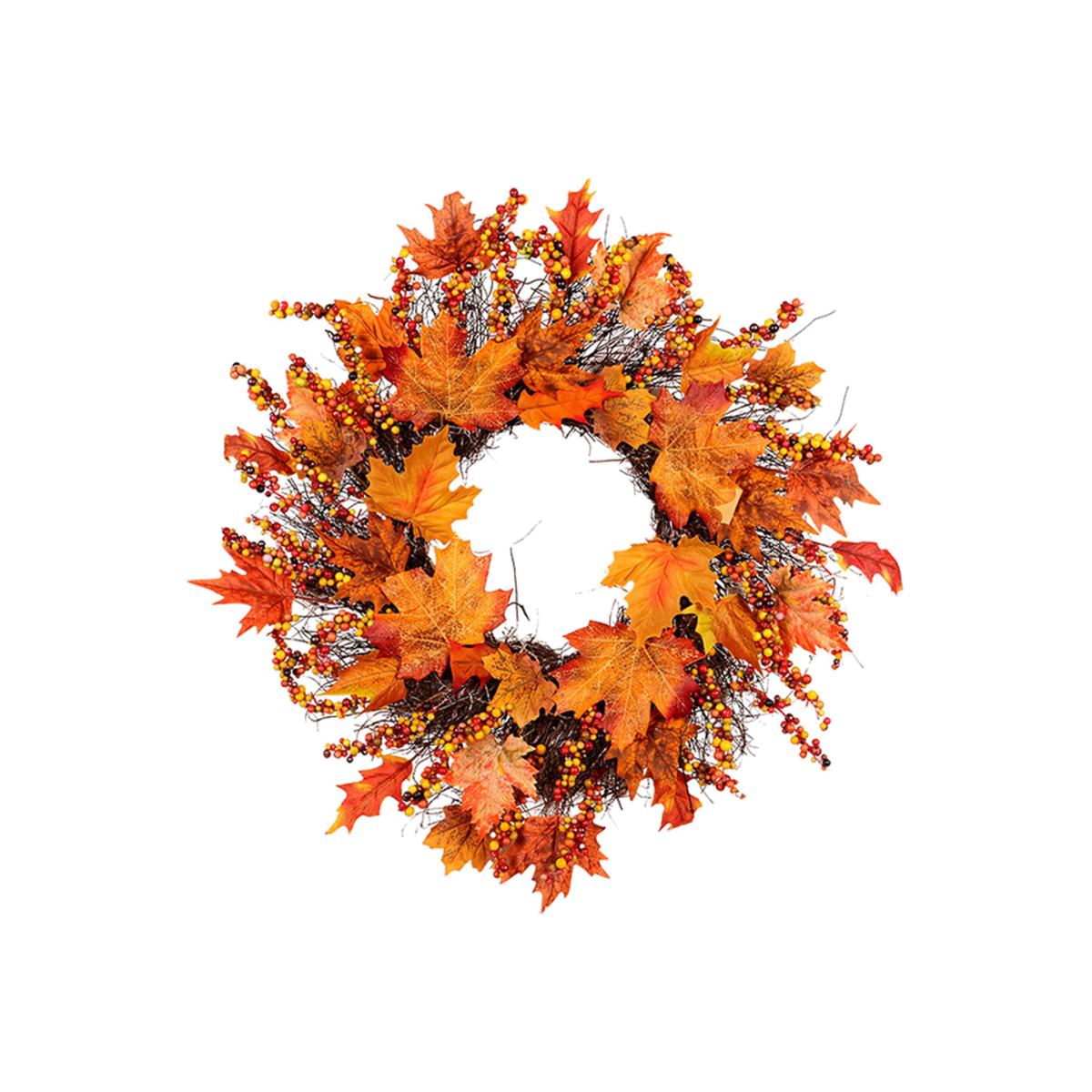 Artificial Maple Leaves Wreath with Berries Harvest Autumn Decor - Orange