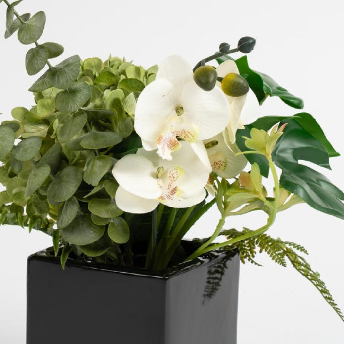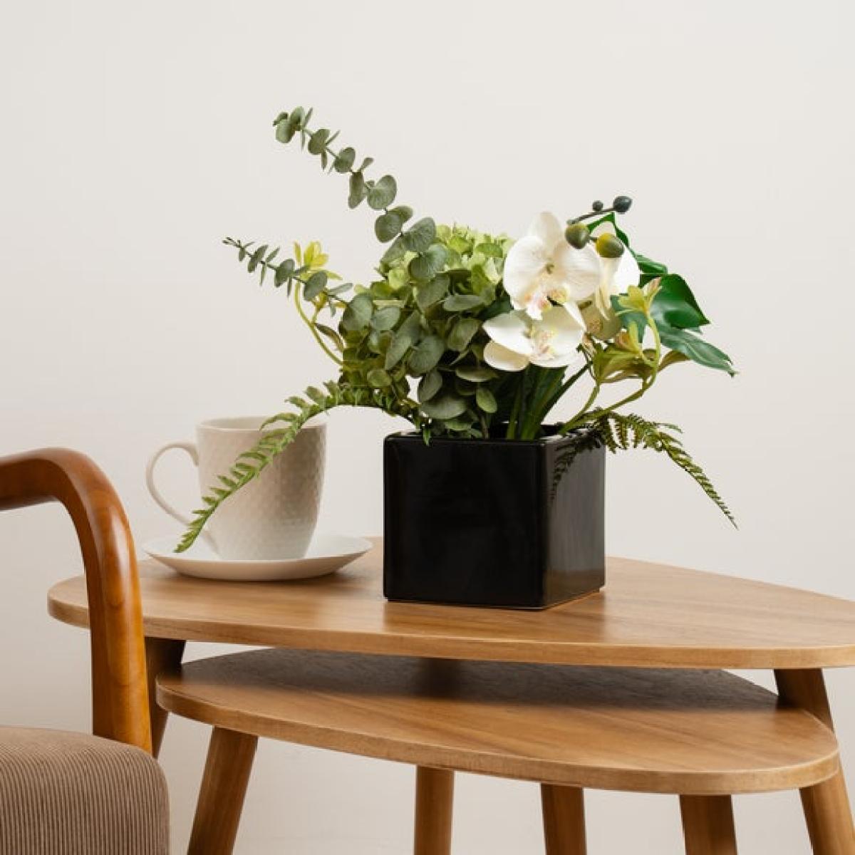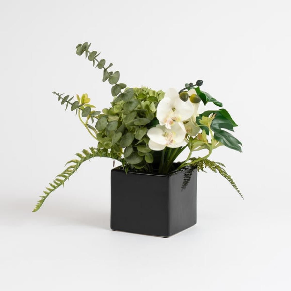 I love this artificial arrangement for its versatility and low-maintenance appeal. It works particularly well in minimalist or contemporary interiors where clean lines and understated accents are key. Its compact size makes it ideal for tables, shelves, or sideboards, adding a touch of greenery without the fuss of real plants. Styling tips include pairing it with neutral colour schemes to maintain a sleek look or mixing it with other textured accessories for added visual interest. Additionally, because it’s artificial, it stays fresh-looking year-round, making it a practical choice for spaces that might not get much natural light or for busy households where real flowers might not last long.