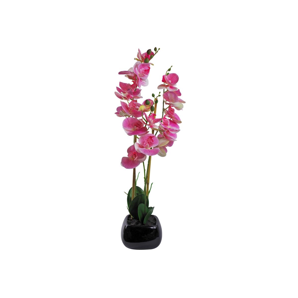 Artificial Orchid in Ceramic Planter - Light Pink Black Ceramic Planter / 30cm