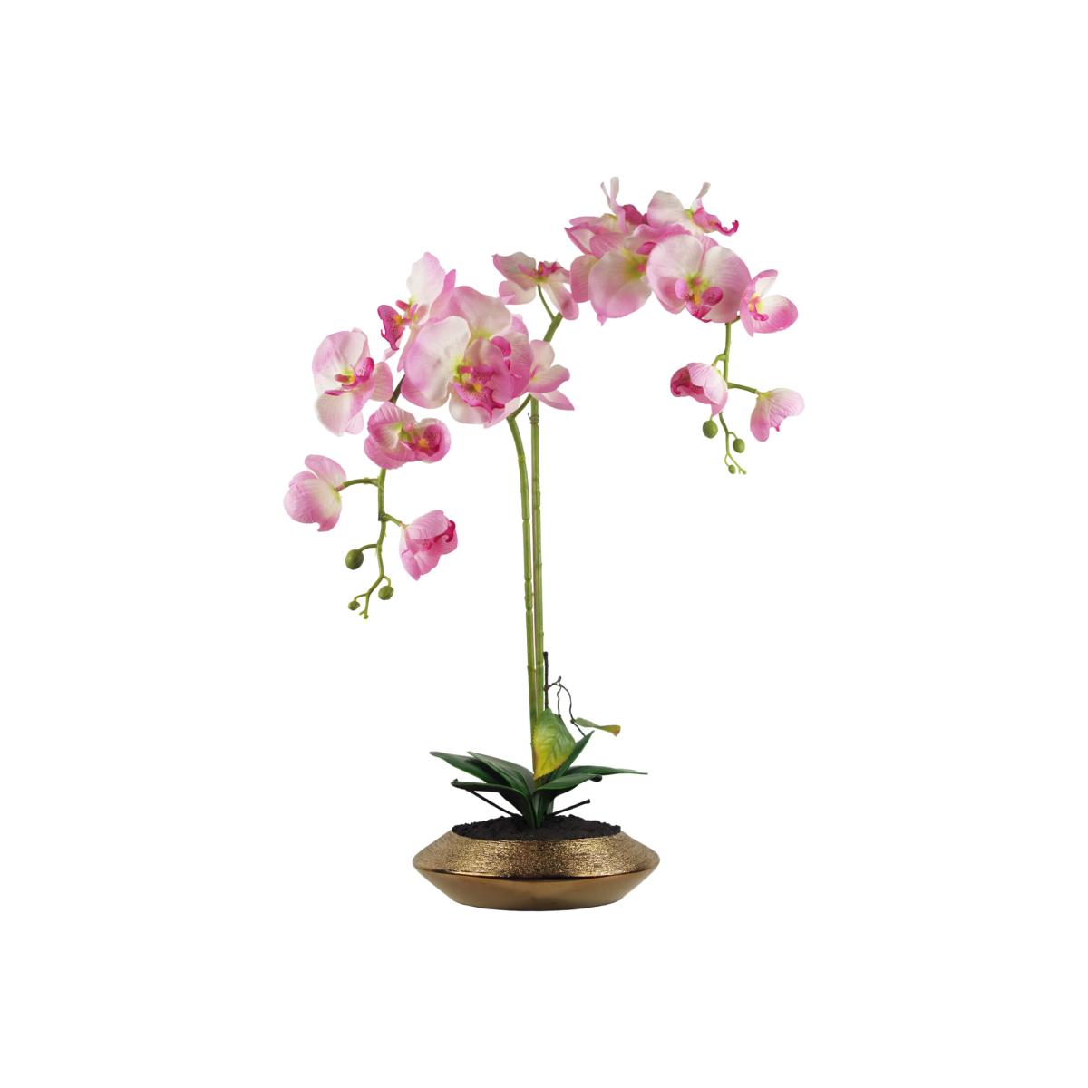 Artificial Orchid Light Pink Gold Dish Ceramic Planter - Pink