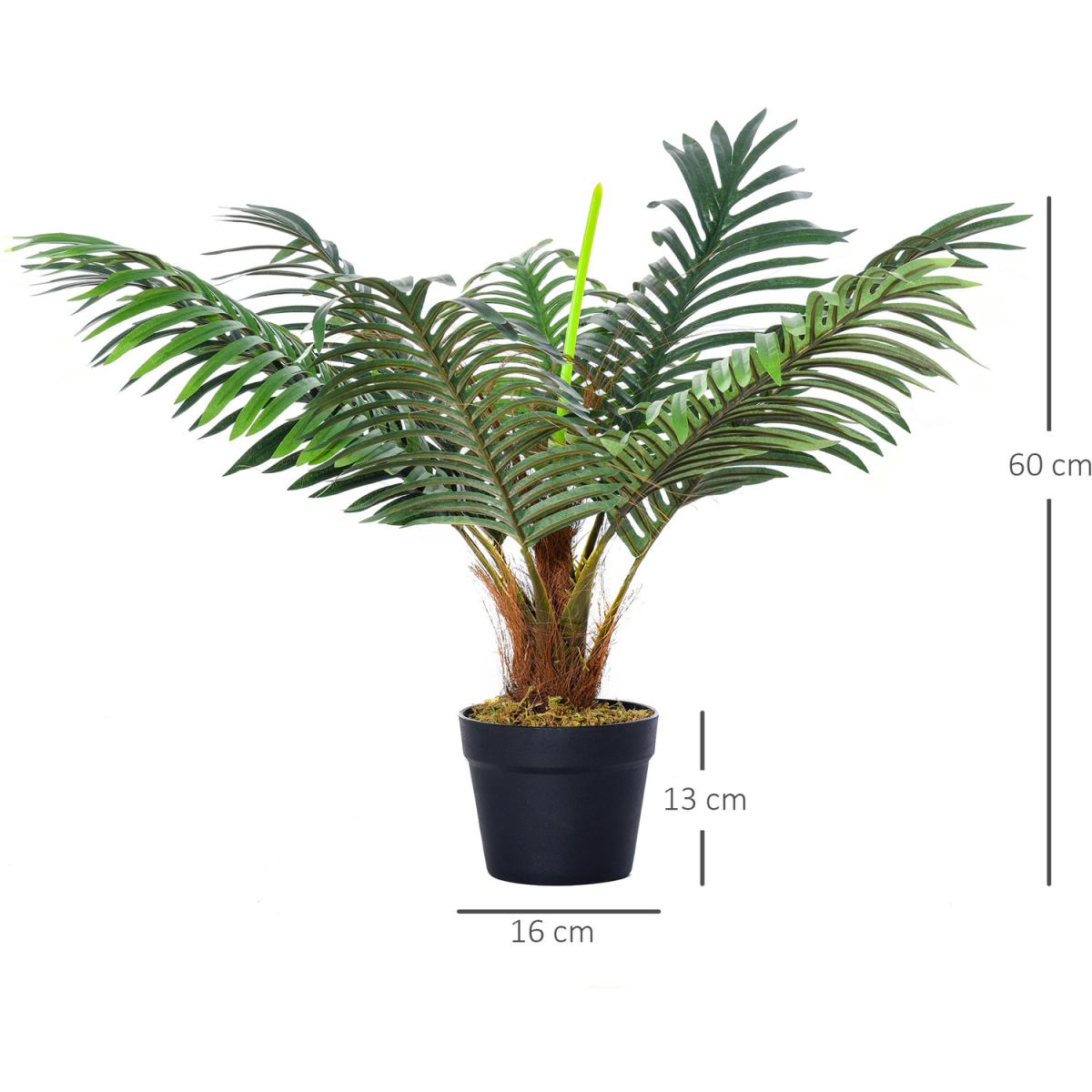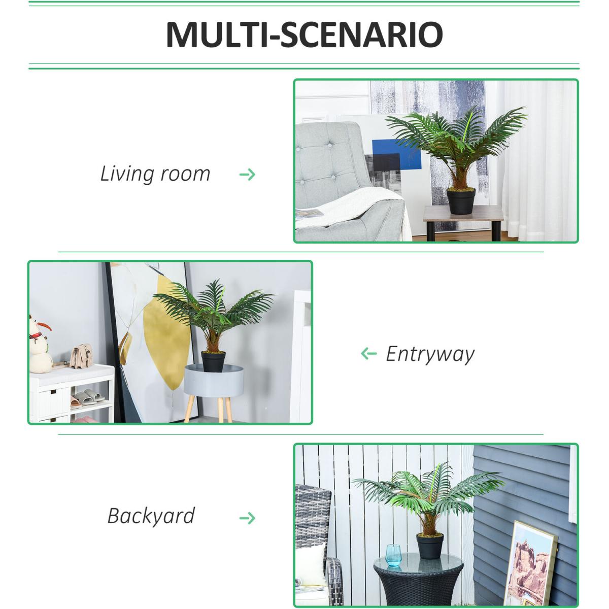 Bring beautiful greenery into your home, without the upkeep - pick this mini artificial palm plant, from Outsunny for a breath of life this season and beyond. It's made from quality plastic for long life and crafted into an 8-leaf design that boasts a realistic colour and texture - hard to tell the difference from its real counterpart. The faux design means zero maintenance too, so it will keep looking the same even without any water. Finished with a cement-filled pot so it stands tall and proud.
