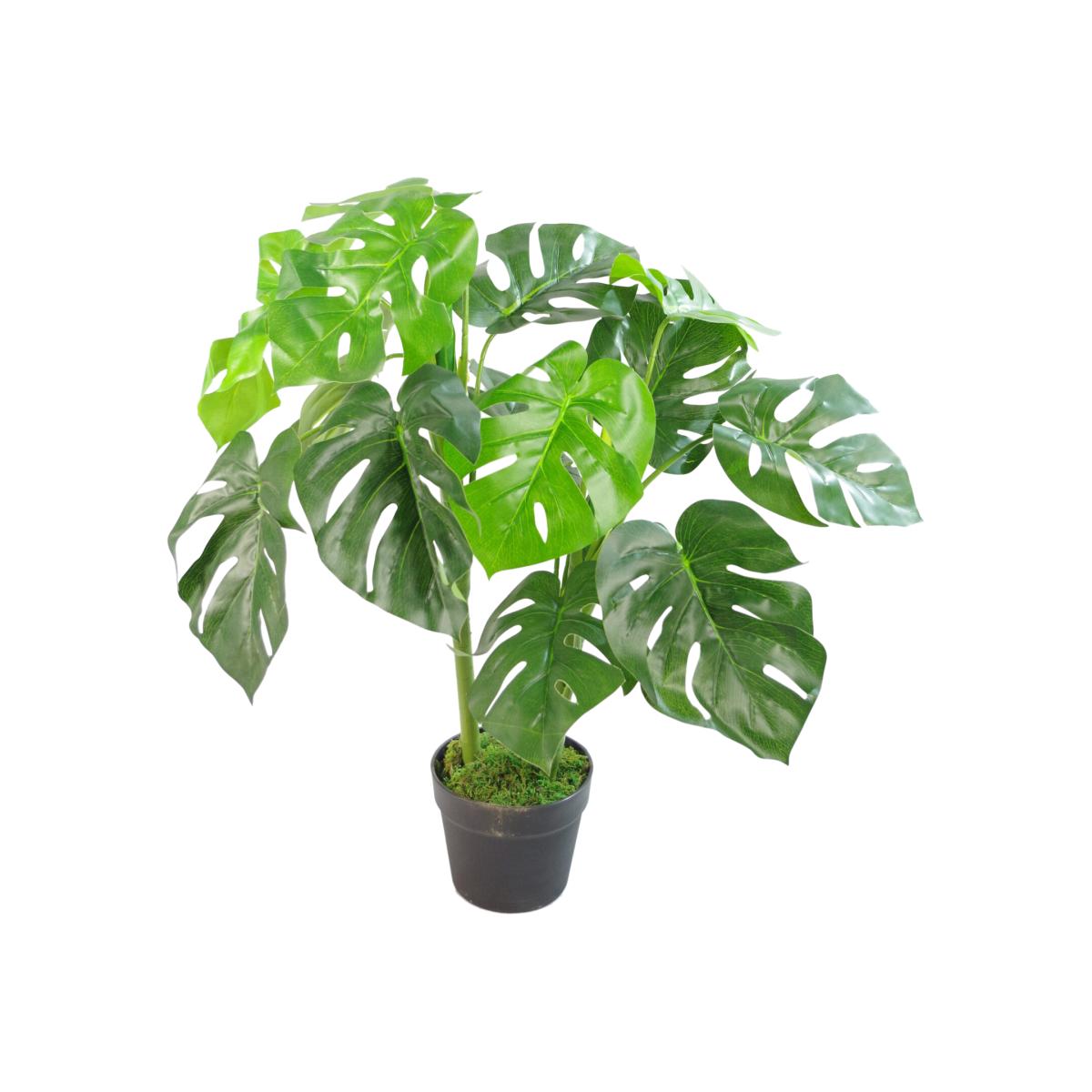 Our artificial Monstera plants have realistically shaped leaves. These come ready potted and make an ideal artificial houseplant. These look particularly good in bathrooms and conservatories. Realistic imitation of a Monstera plant. It has a moss-covered pot. It is highly realistic with botanically accurate foliage. Stems are wired and can be shaped to your requirements. It comes potted in a plain plastic pot and is ready to display. You can easily put this inside a larger planter if you wish.