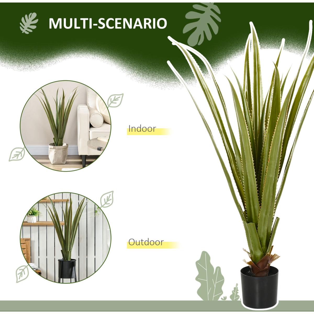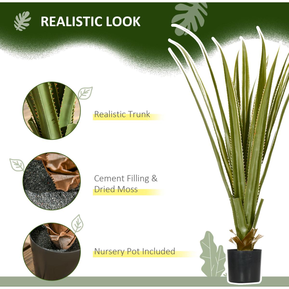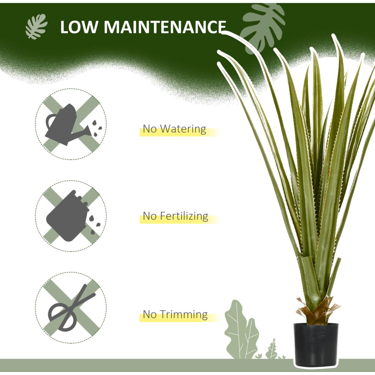 Bring natural beauty into the home without upkeep - pick this faux Agave plant, from Outsunny, for a breath of life this season and beyond. Made from plastic for extended lifespan, it boasts realistic colours and textures - looking like the real thing. The faux design means zero maintenance too - will keep looking the same even without any water. Finished with a cement-filled pot so it stands upright, wherever it is placed.