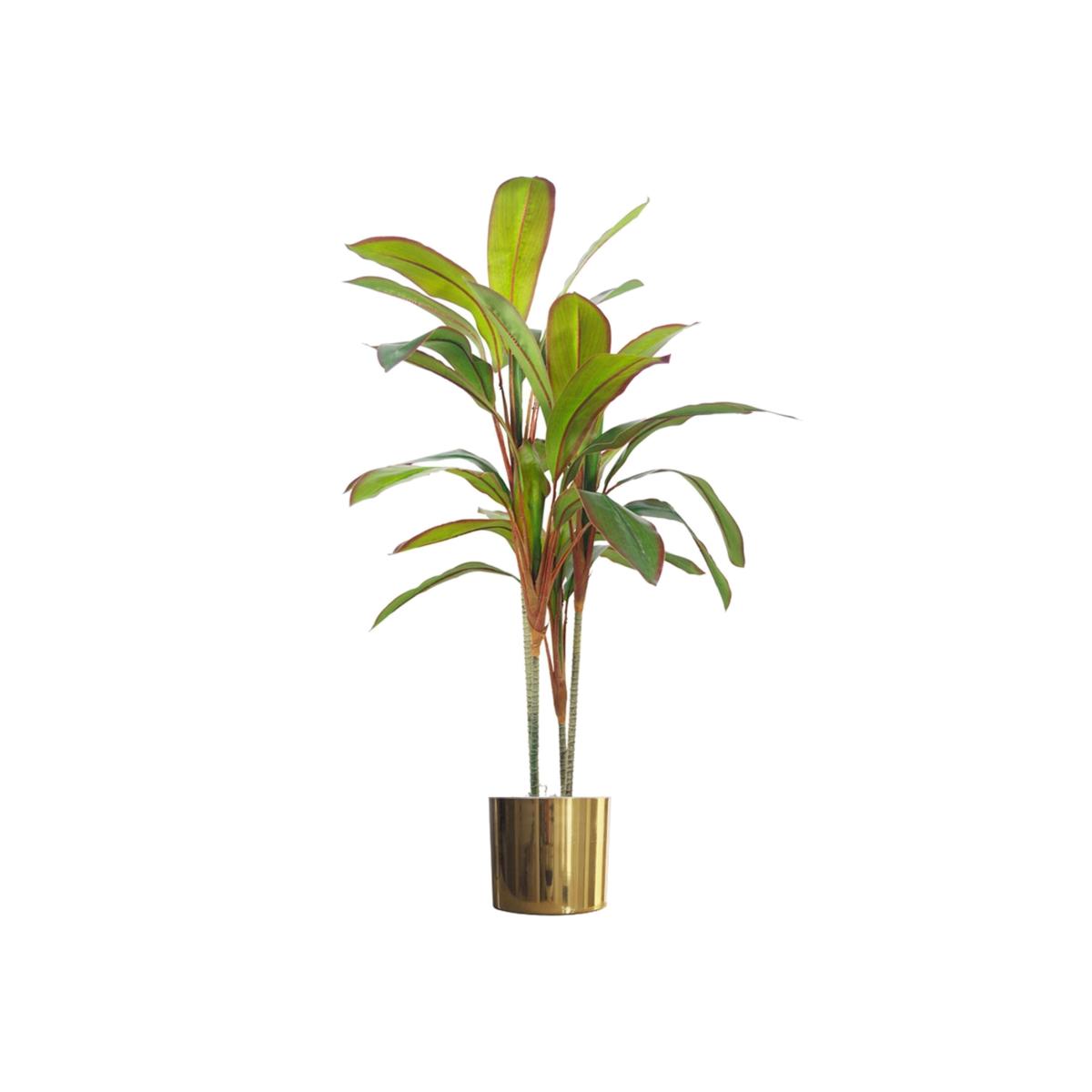 Artificial Potted Dracaena Tropical Plant with Gold Metal Planter - Dracaena Large Leaf Gold