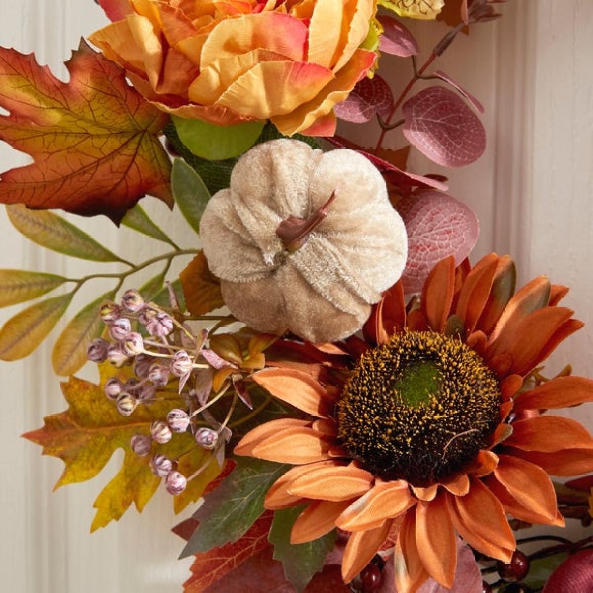 I love the artificial pumpkin sunflower wreath for adding a seasonal touch to a wide range of interiors without the fuss of fresh flowers. Its warm, autumnal colours make it especially suitable for rustic, farmhouse, or traditional home styles, but it can also add a cosy, festive vibe to more modern spaces when paired with neutral tones. For styling tips, hang it on a front door for immediate seasonal impact or position it above a mantel or console table for a cheerful centrepiece. Since it’s artificial, it’s low-maintenance and durable, making it ideal for long-term display-just ensure it’s placed somewhere it won’t be exposed to direct sunlight to keep colours vibrant. It’s a versatile piece that can be complemented by other harvest-inspired accessories or used as a standalone statement.