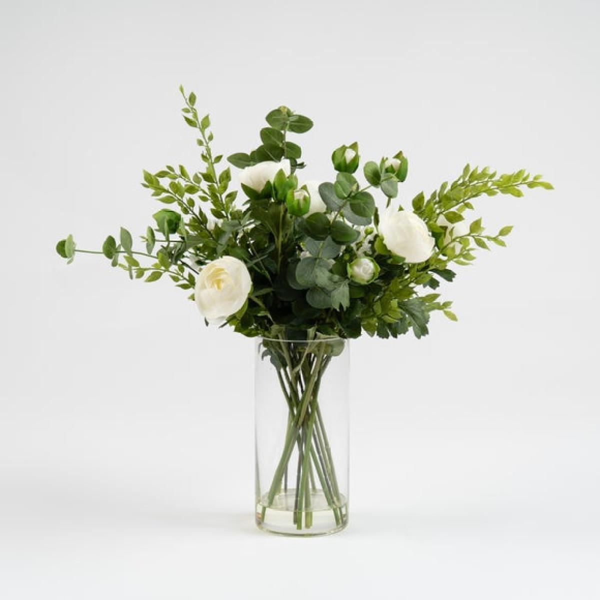 Artificial Ranunculus Bouquet in Clear Glass Vase
