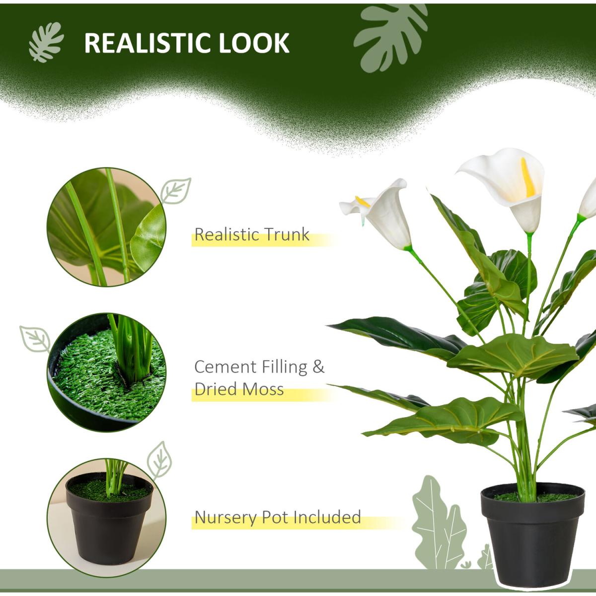 Artificial Realistic Set of 2 Calla Lily Flower in Pot for Outdoor, 55cm - Green