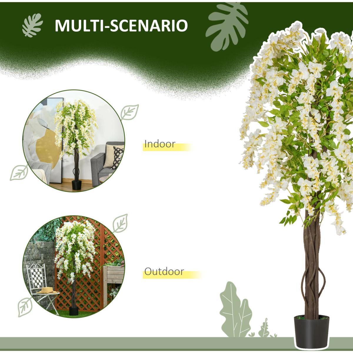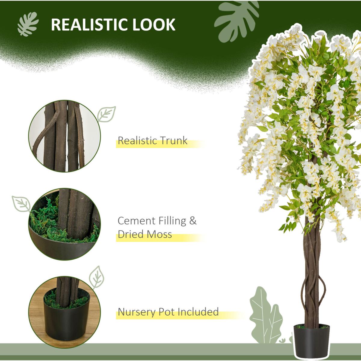 Artificial Realistic White Wisteria Tree in Pot Plant for Outdoor, 160cm - White