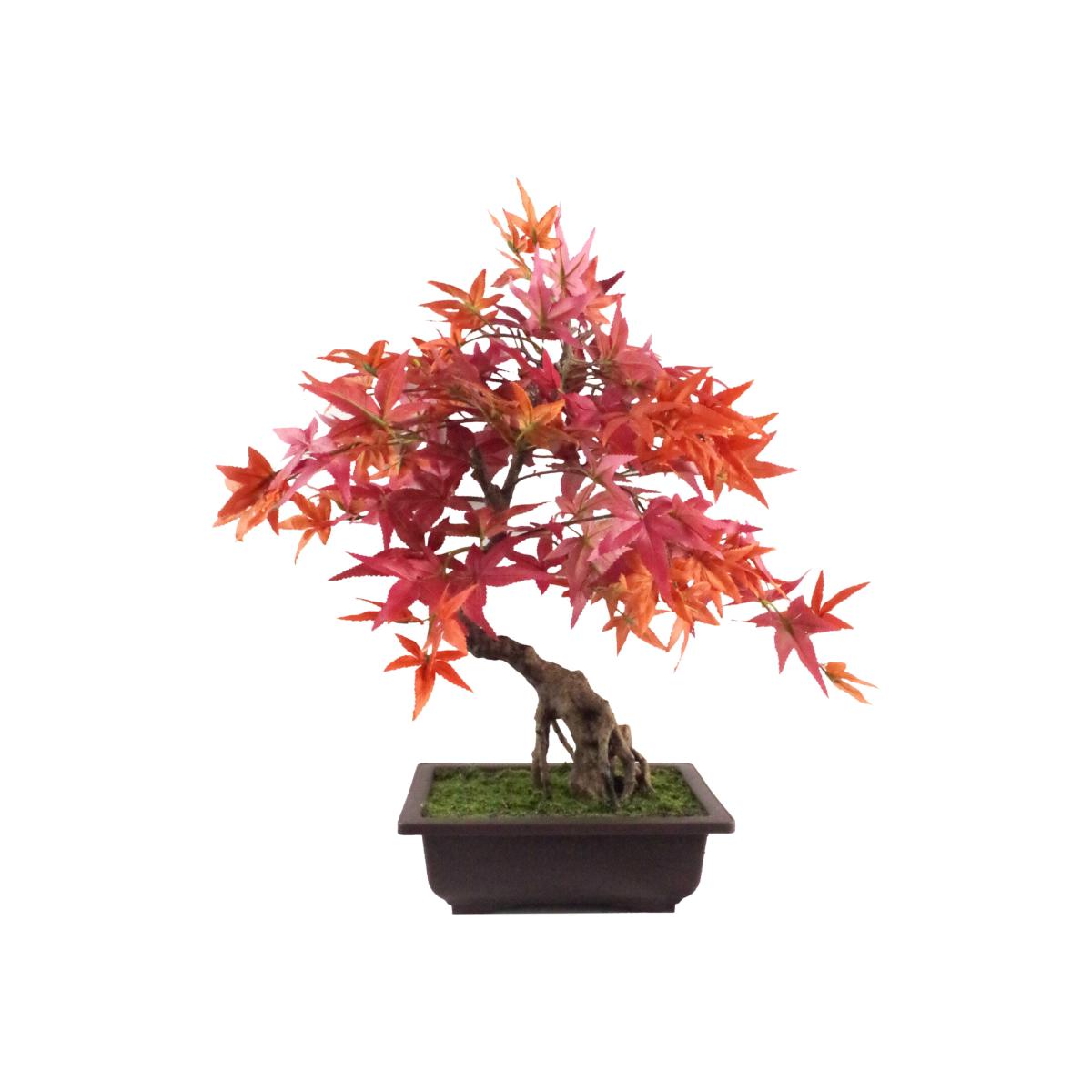 This artificial bonsai tree. Comes fully potted in a decorative plastic planter- ready to display. Everything from the detail on the trunk to the moss effect base has been beautifully crafted. This plant has all the attractiveness of a bonsai without any of the maintenance. The main trunk is fixed but the larger brown stem offshoots are wired so there is an element of flexibility to this tree and the main branches can be shaped and arranged to fit your space. Pot material Plastic. Leaves Silk. Trunk Moulded plastic. Not suitable for outdoor use.