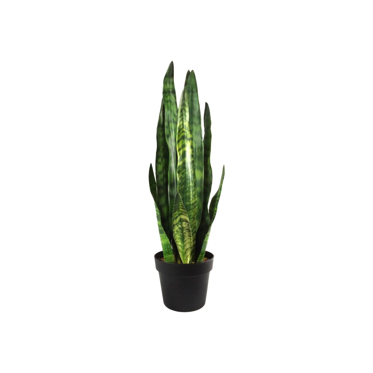 Artificial Sansevieria Zeylanica The leaves are all wired so you can either display this as we have in our pictures or you can fold the leaves out slightly if you prefer. Comes fully potted in a black plastic pot These look particularly nice when coupled with our decorative planters as shown in some of our pictures. The pot is topped with fixed gravel which is glued down. This plant is available in other colours.