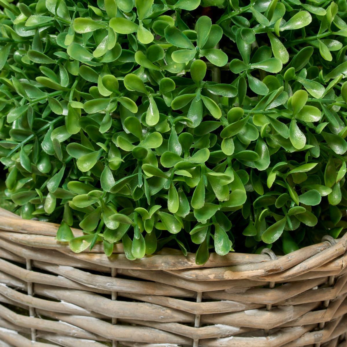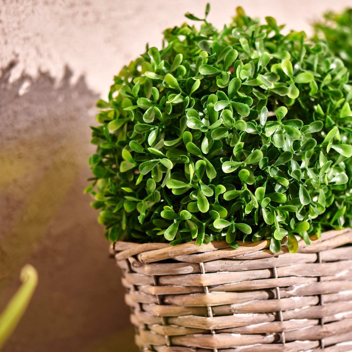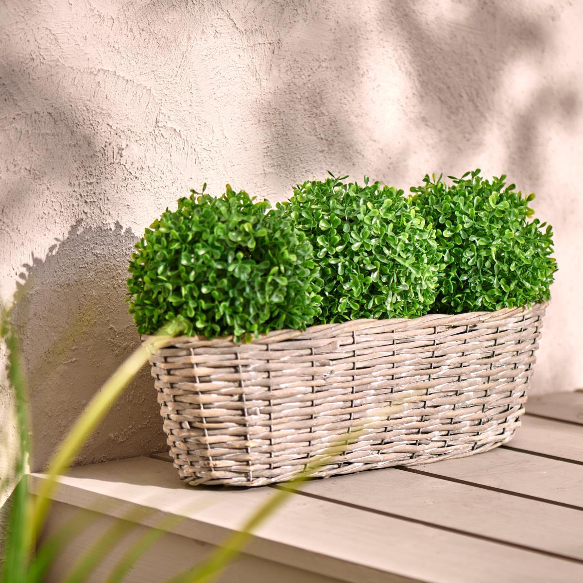 Presented in a charming wicker basket planter, this set of three artificial topiary balls would make a charming addition to any household. Suitable for both indoor and outdoor use, this artificial topiary features a natural look and requires no watering or maintenance to keep looking fresh all year round.
