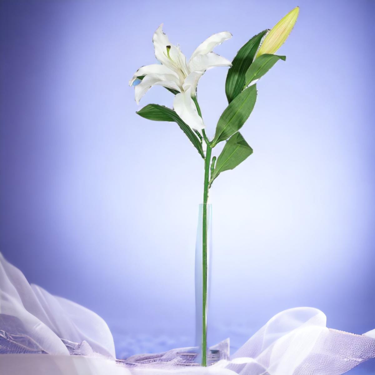 I love this faux lily stem because it offers a crisp, elegant touch without any of the fuss of fresh flowers. Its realistic silk texture makes it versatile for various interiors - from modern minimalist spaces to classic and romantic schemes. It works particularly well in neutral palettes or monochrome settings, adding a subtle natural element. For styling, I recommend grouping a few stems in a sleek vase or using them to soften sharp corners on shelves or mantels. Because it’s artificial, it’s low maintenance, making it perfect for busy households or spaces without much natural light. Just a little dusting now and then keeps it looking fresh over time.
