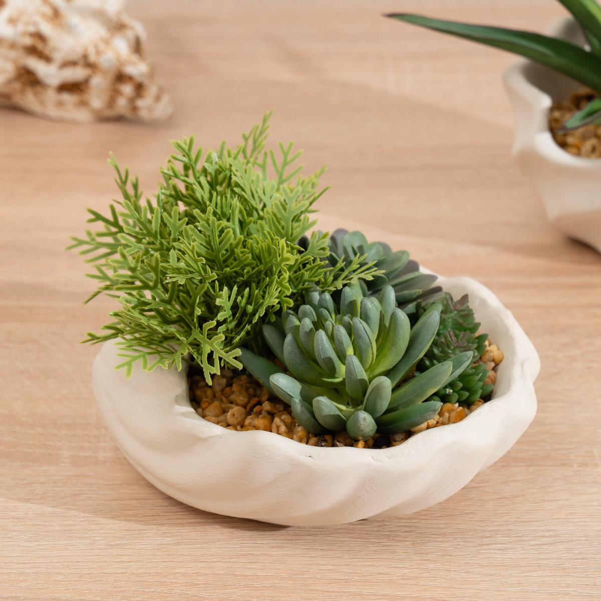 * Artificial succulent * Shell-shaped pot * Great coastal touch * No maintenance needed Bring a touch of coastal charm to your home with these lifelike artificial succulents, nestled in a beautifully designed shell-shaped pot. Perfectly sized for your bathroom shelf, mantelpiece or side table, it adds a splash of greenery without the need for upkeep. With its realistic foliage and delicate shell detailing adding a subtle coastal feel, this piece makes a thoughtful gift or a refreshing accent for your own space. And the best bit - no watering required!