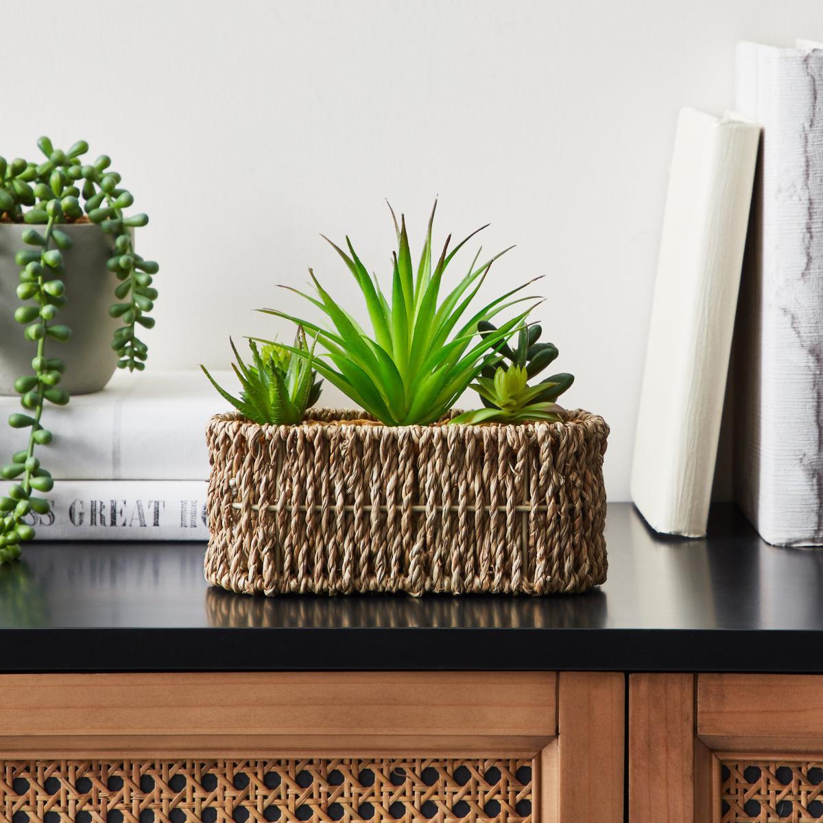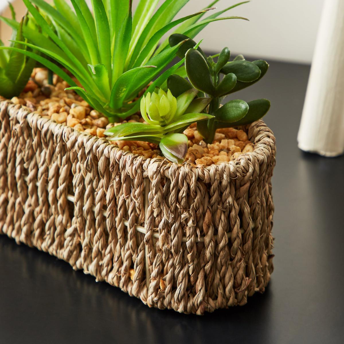 Add a touch of greenery to your home with this stunning, maintenance-free artificial Succulent, presented in a gorgeous woven pot. The beautiful piece will bring the outside in, while being easy to keep.