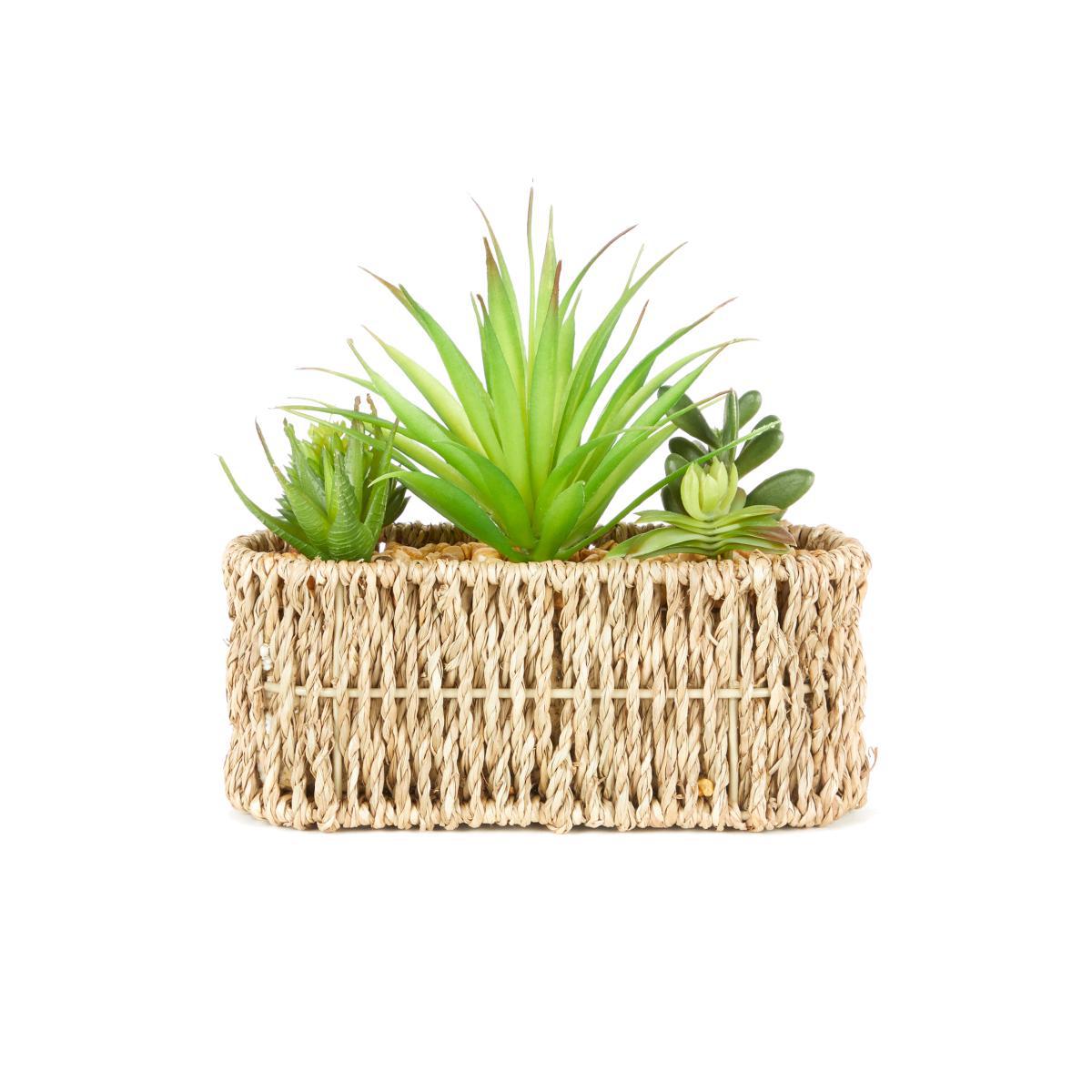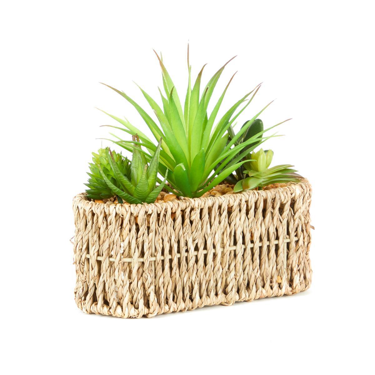 Artificial Succulent Garden Multi in Woven Pot Green and Brown