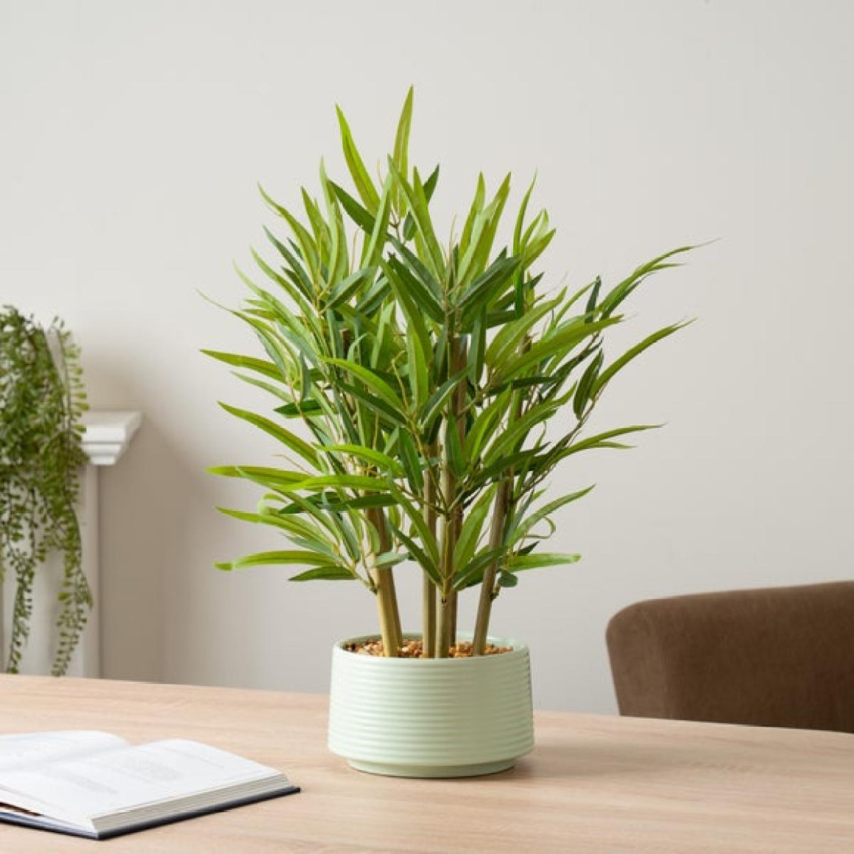 * Realistic artificial bamboo * Soft green ceramic pot * Perfect for a sense of calm * No watering needed Add a peaceful, natural feel to your home with this lifelike Bamboo in a Ceramic Pot. At 51cm tall, it makes an eye-catching statement on any tabletop or shelf. The glossy ceramic pot adds a clean, modern touch, letting the rich green leaves and slim stalks do all the talking. No watering or sunlight needed - just enjoy the look of greenery without the maintenance. It’s a simple way to bring balance and calm into your everyday space.