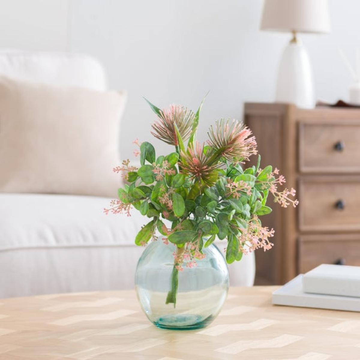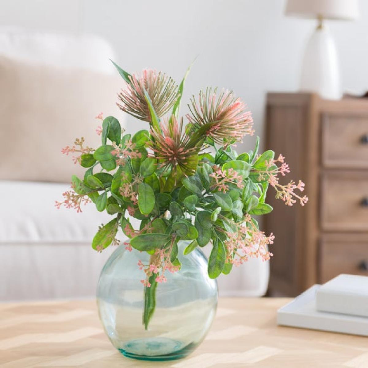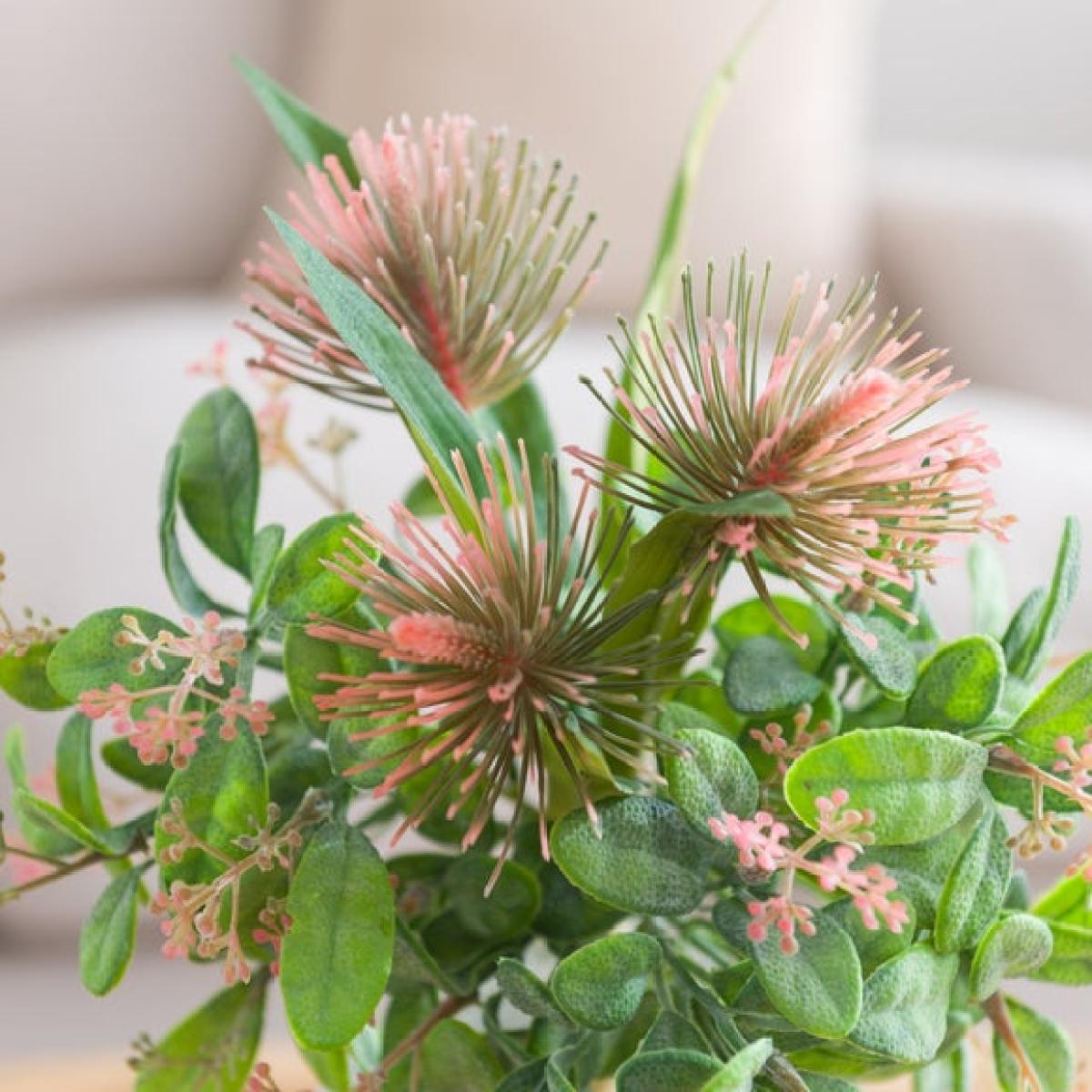I love the artificial thistle and foliage bundle for its realistic textures and natural colour palette, making it a versatile styling addition. It works particularly well in neutral or minimalist interiors where a touch of greenery can break up monochrome schemes, but it also complements rustic or country-inspired decor beautifully. Practical tips include placing it in clear or textured vases as a centrepiece or grouping several for a more abundant display on shelves or mantlepieces. Since it’s artificial, it’s a low-maintenance option that retains its fresh look year-round, perfect for spaces where real plants might struggle to thrive or for those who prefer a fuss-free greenery arrangement.