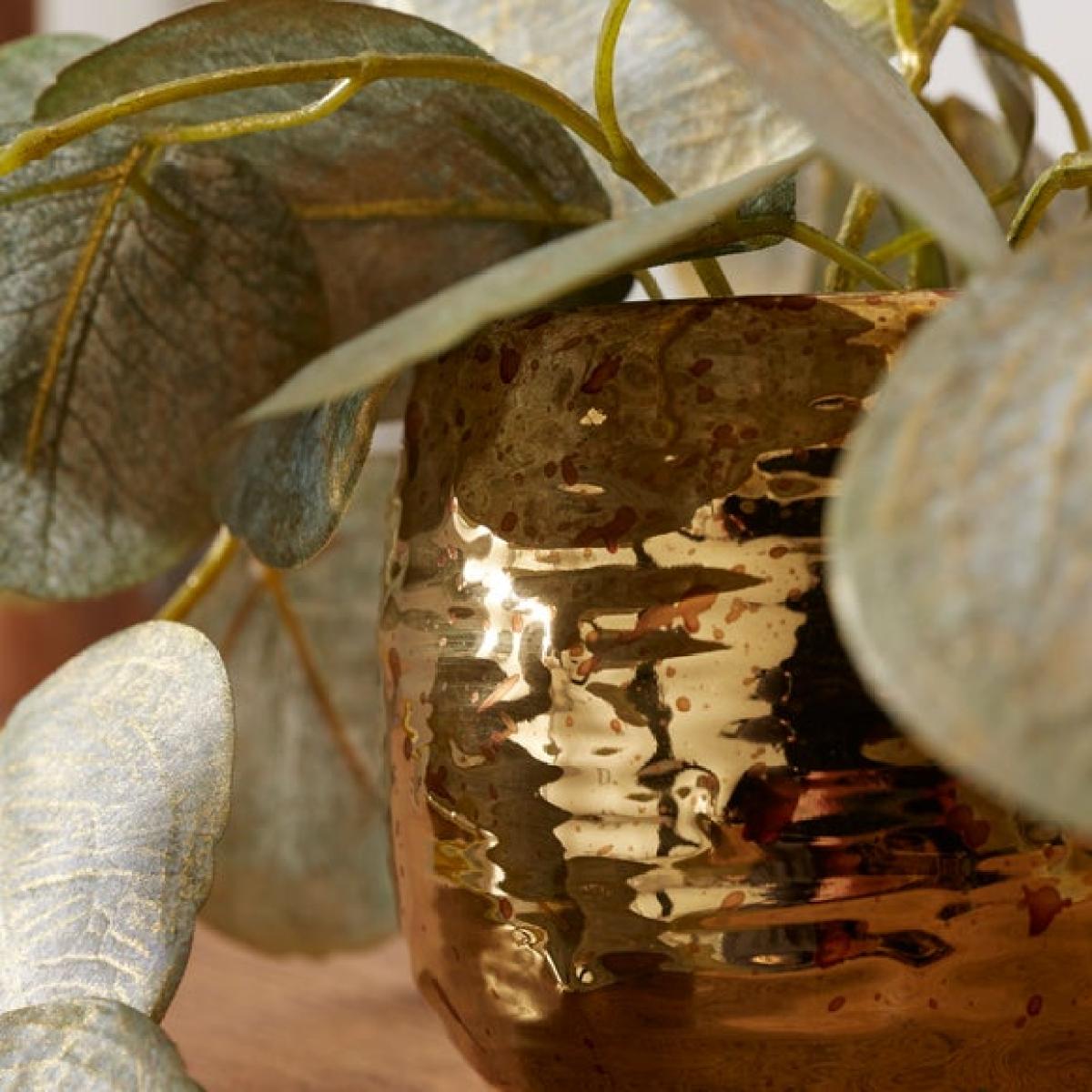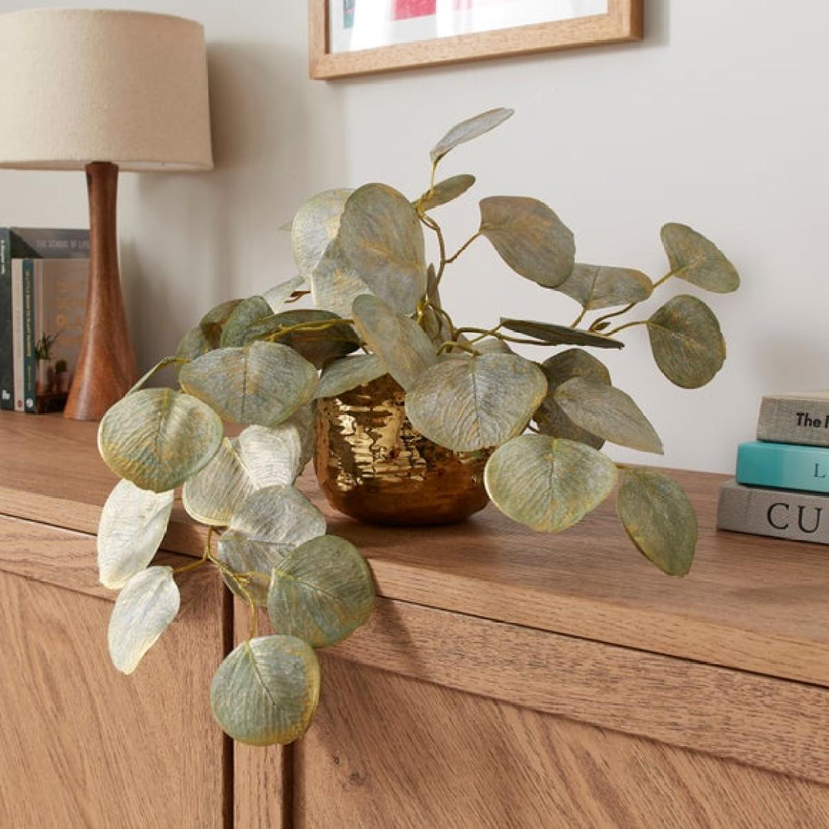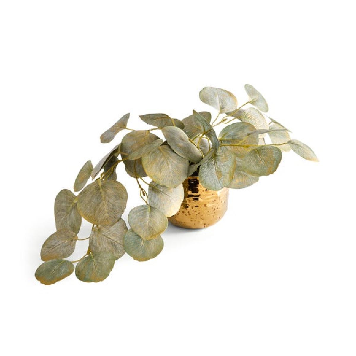 Artificial Trailing Metallic Eucalyptus in a Gold Plant Pot