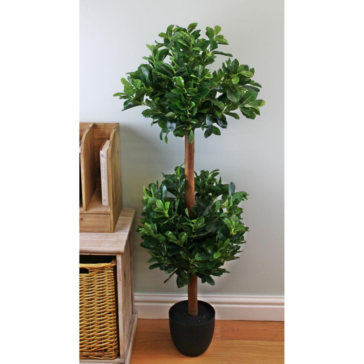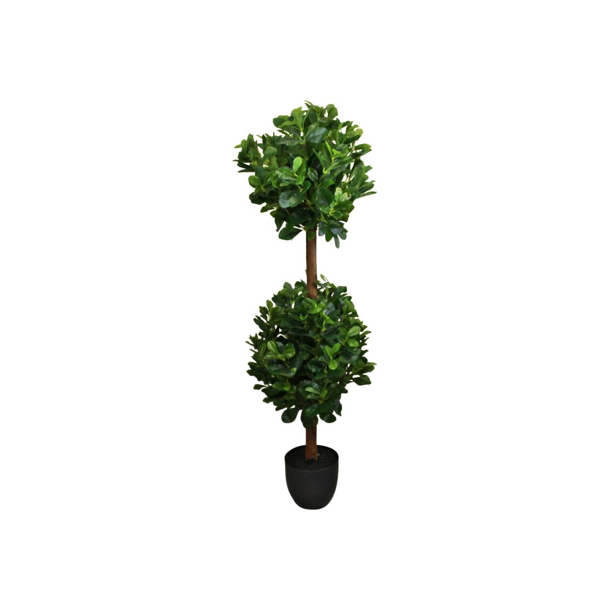Discover the Beauty of Our Artificial Tung Oil Ball Trees for Your home Office tall including the pot and has a maximum width ofwith the leaves fully spread out, however this may vary slightly depending on how you position the leaves. The stems have can be bent out enabling them to be spread out to the desired shape. The plant has an extremely high amount of detail. The leaves show detail such as the numerous veins running through them. It comes in a black plastic pot with a height of 16cm, footprint diameter of 11cm and a top diameter of 20cm. This plant is suited for indoor or limited outdoor use. If used outdoors we recommend this plant is placed in a sheltered area and protected from extreme conditions such as strong winds or frost as persistent exposure could lead to the foliage being damaged. Any artificial plants used outdoors should be in an area with sufficient ventilation to allow them to dry out if they get wet.