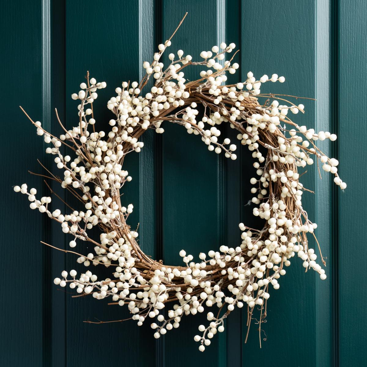 I love this white berry wreath for its clean, versatile look that can suit a variety of interiors. It works particularly well in minimalist, Scandinavian, or contemporary spaces thanks to its neutral tones and understated elegance. To style it effectively, consider pairing it with natural textures like wood or woven baskets for a cozy feel, or hang it on a painted wall for a simple, chic touch. Practical tips include placing it on a door to add a subtle seasonal statement or incorporating it into a centrepiece arrangement for a fresh, festive look. Its artificial nature means it’s low maintenance and long-lasting, making it a reliable choice for year-round decoration.