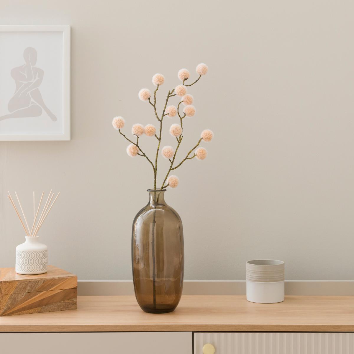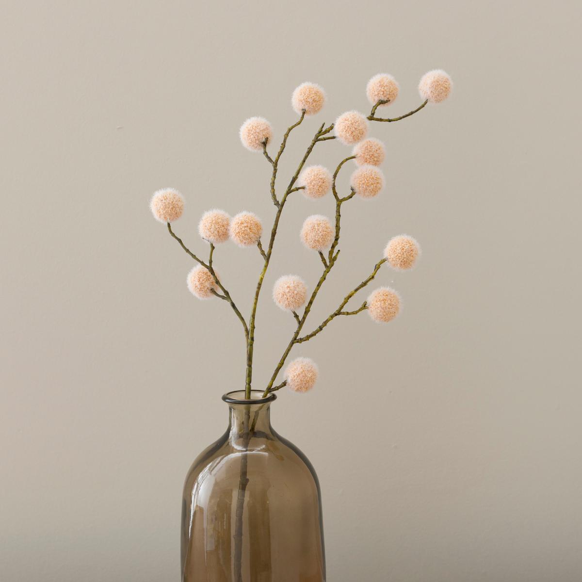 I love this white pompom stem for its simple, understated charm that adds a touch of softness to any space. It works well in minimalist interiors, where its clean colour and textured form bring a subtle focal point, or in more eclectic settings as a fresh contrast. Practical styling tips include placing it in a neutral or textured vase, as shown, to highlight its delicate details. It’s also a versatile piece that can be grouped with other artificial stems or placed solo in a corner to lift a any table or sideboard without the fuss of real flowers.