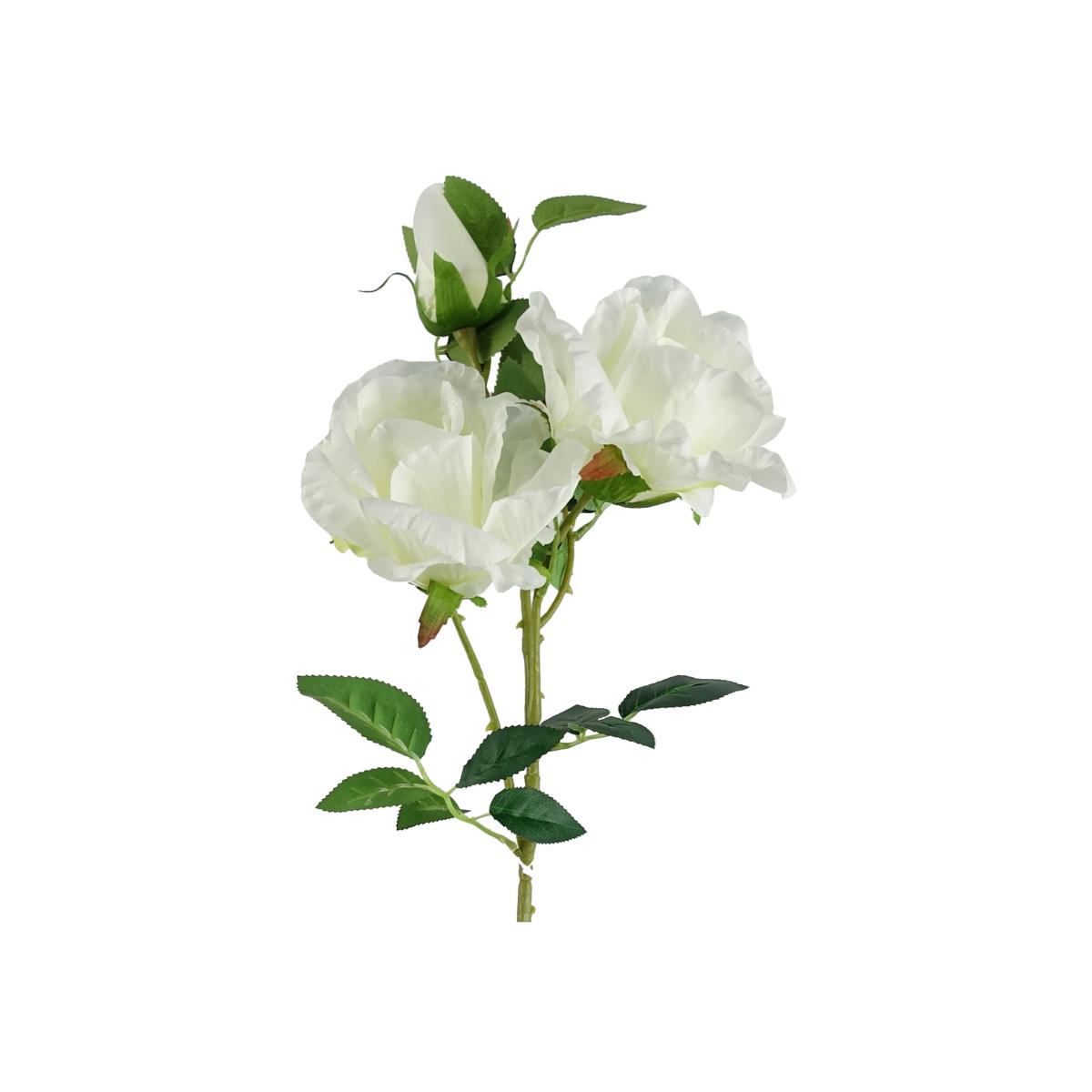 Artificial rose stem in an off-white colour. Can be used to make arrangements with our other artificial flowers or as decorations on their own. Each stem has two large flower and a bud. Flowers are silk. These are easy to cut down shorter using a pair of wire cutters if required. Some of our photos show vases to give an idea of size and possibilities for arrangement but no vases or planters are included with these flowers.