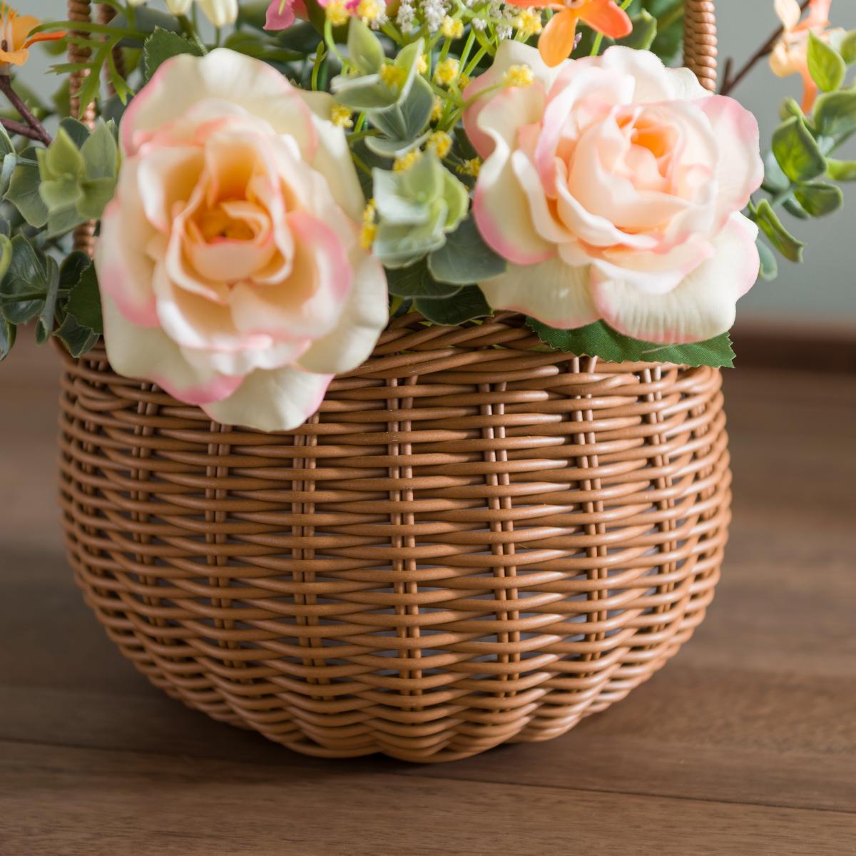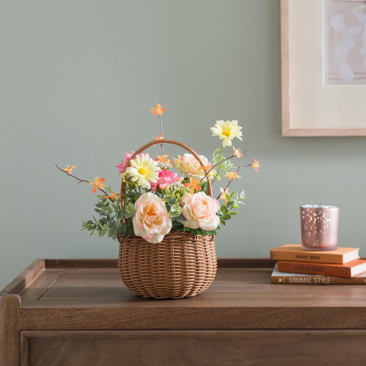 * Artificial arrangement* Multicoloured display* Woven basket included This artificial arrangement will bring a mix of multicoloured blooms and a natural touch to your home, with their woven basket planter. They require no maintenance or flower arranging skill, and are the perfect way to add colour to your room all year round.