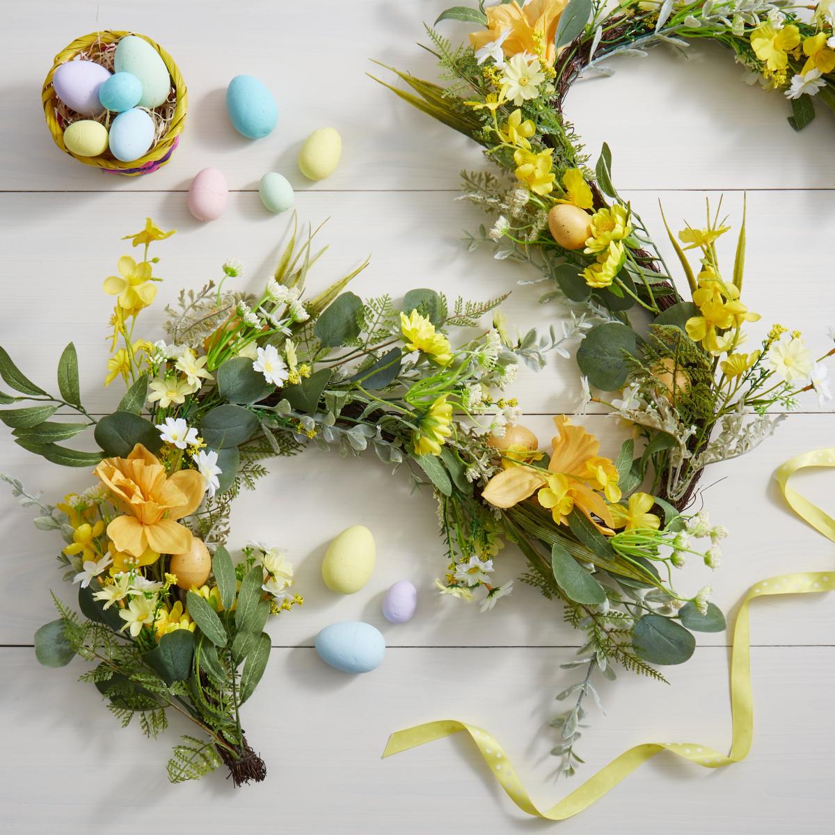 * Artificial Daffodil* Bright Yellow Colourway* No Maintenance Required Embrace the vibrancy of the season with our Artificial Yellow Daffodil Floral Garland – a realistic burst of yellow daffodils in an Easter-inspired design. This garland effortlessly infuses your space with a pop of colour, creating a cheerful ambience in your home.