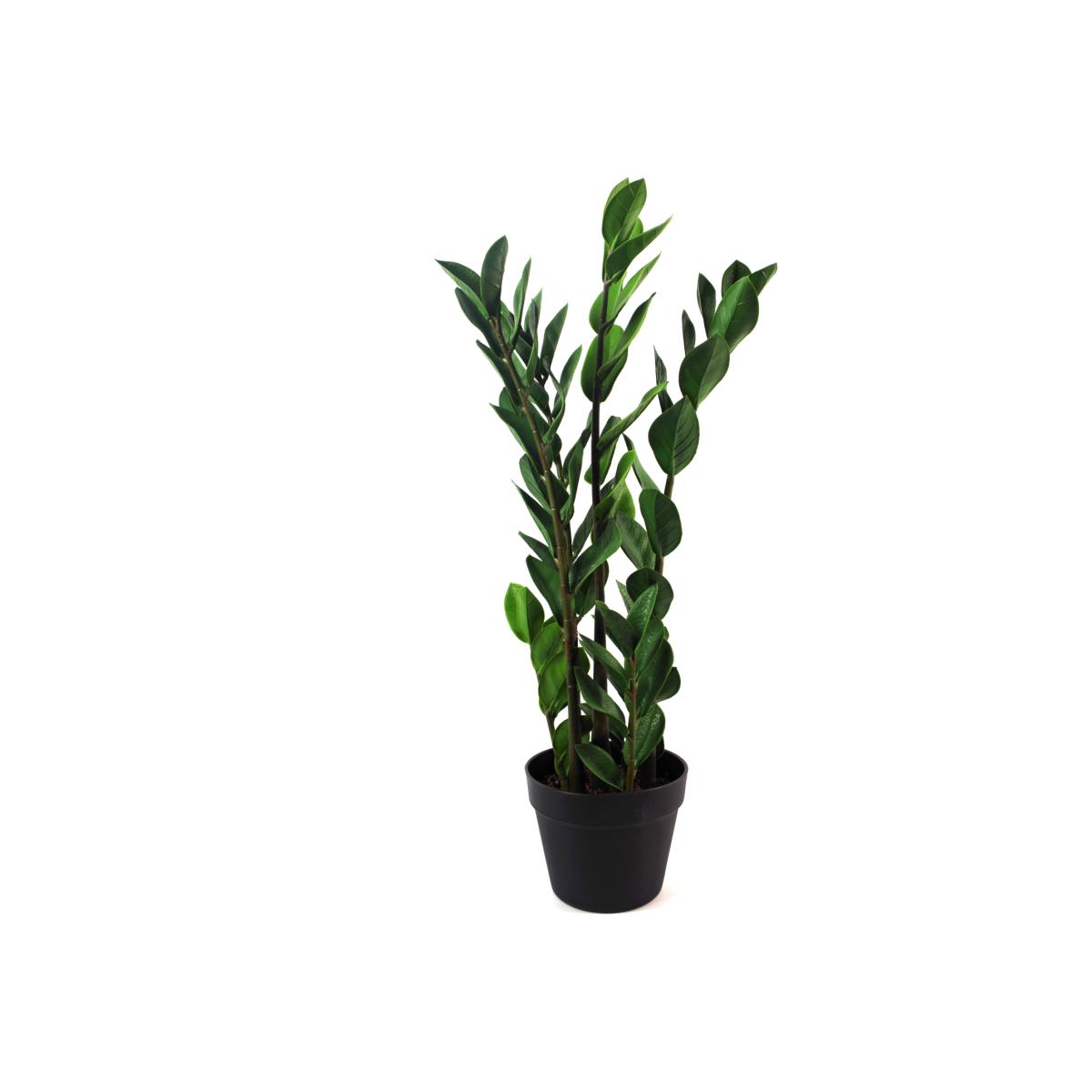 Also known as Zamioculcas this striking Zanzibar Gem large leaf artificial plant looks great anywhere in the home. Particularly popular for conservatories and bathrooms this is a no-maintenance alternative to a real plant. The stems are wired so this can be arranged as you wish. The pot is weighted with fake glued gravel. It is highly realistic with botanically accurate large real-touch plastic leaves. It can easily be placed inside a larger planter if required.