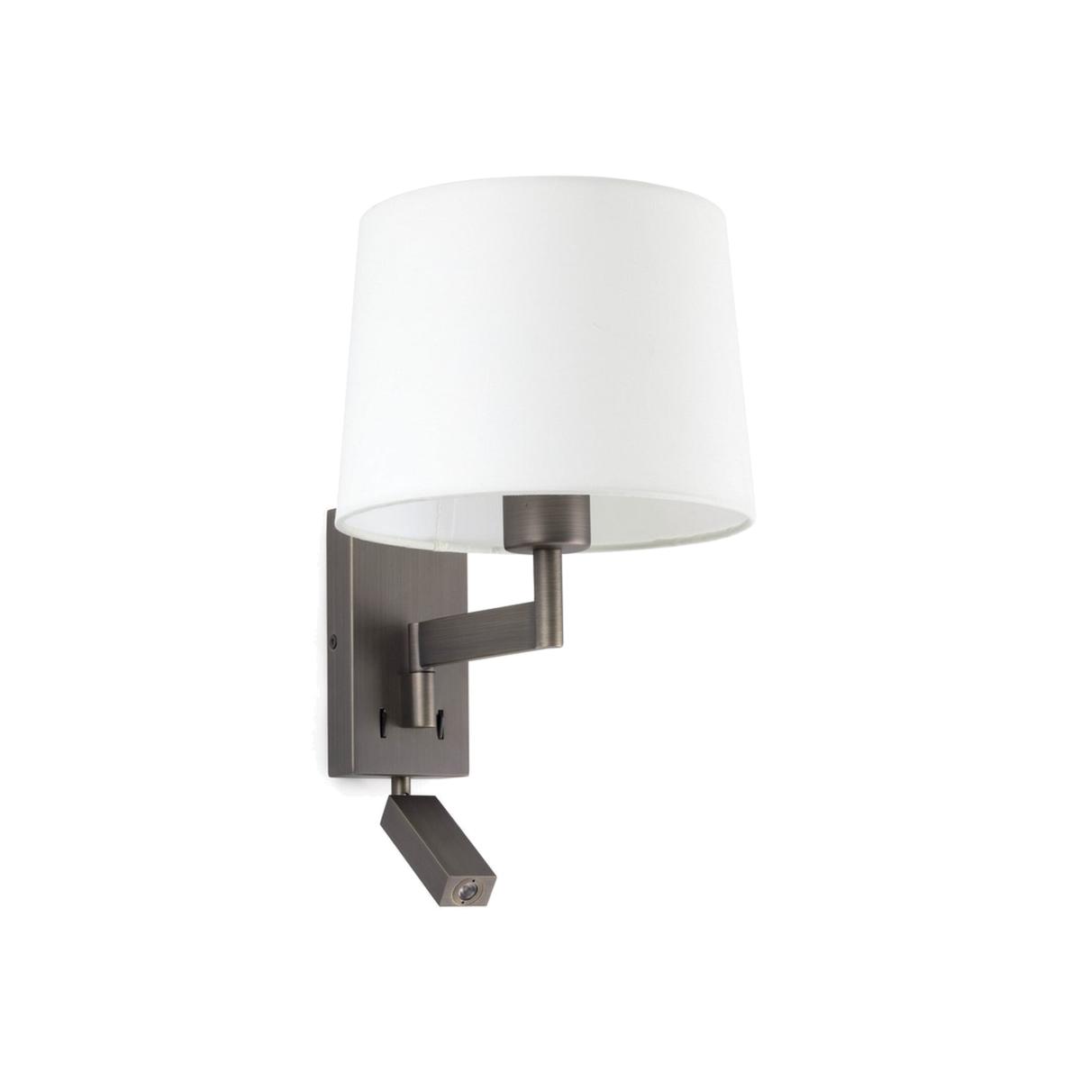 Perfect for placement next to the bed or a favourite armchair the Artis Bronze Reading Wall Light has an adjustable lamp head. Soft light is emitted from the white shade while directional light comes from the attached reading light. Sleek and modern this fixture is an easy way to layer the lighting in any space.