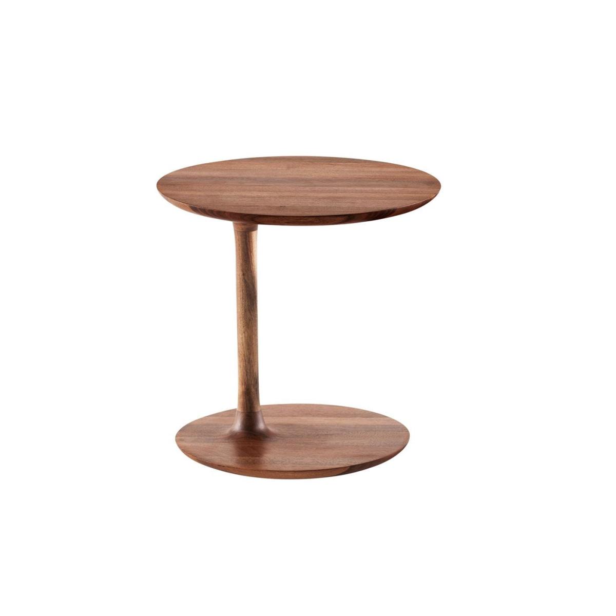 I’m a big fan of the Bloop side table in European walnut for its clean, sculptural silhouette and warm wood tone. It suits modern, Scandinavian or mid-century interiors, and its generous 70 cm top makes it ideal as a low coffee or occasional table. To style it, keep the look simple with a slim metal lamp or a stack of design books, then balance with a single ceramic vase or a low-profile plant. Its natural finish works particularly well against neutral fabrics or moody-toned rugs, adding a subtle focal point without overpowering the room.