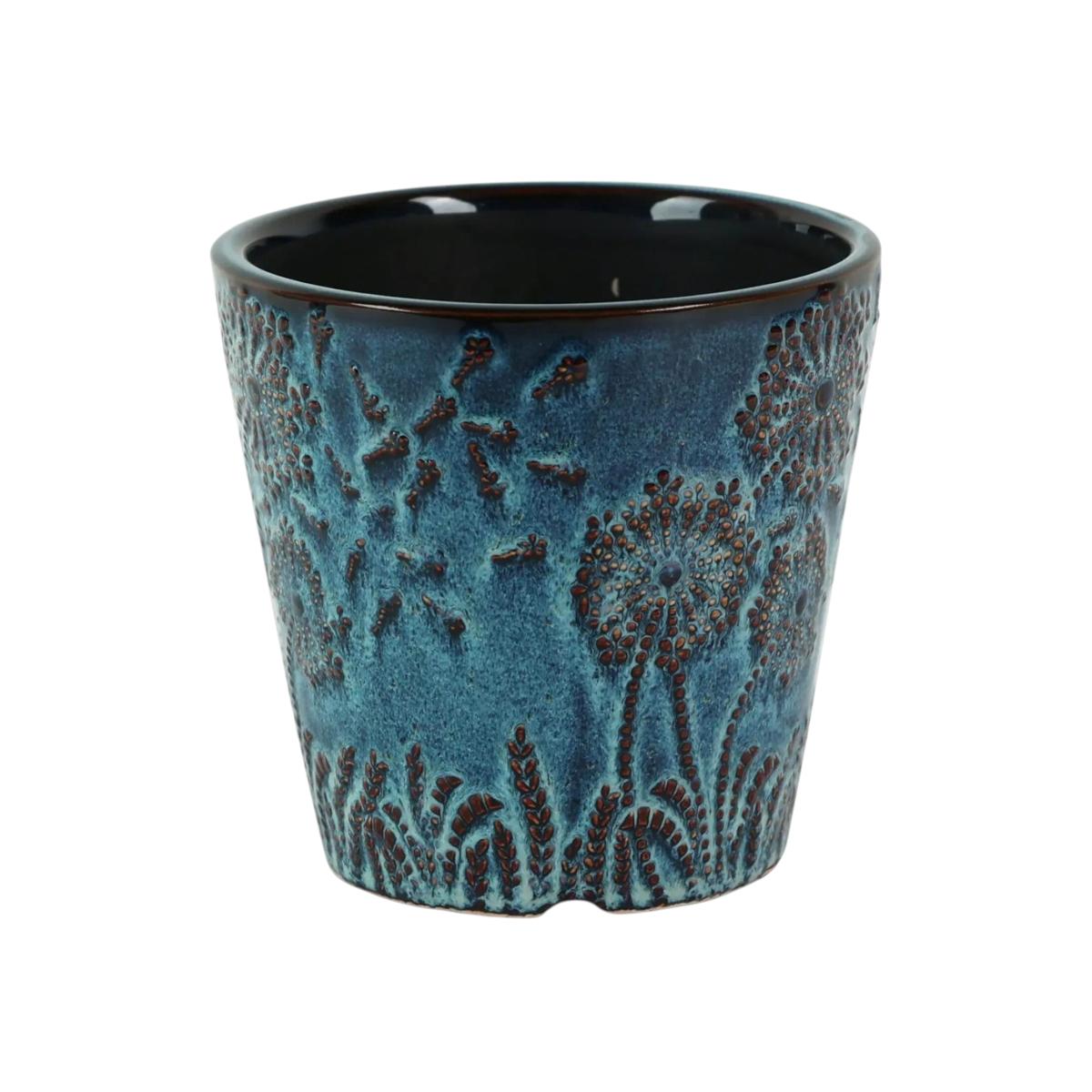 Capture the whimsical beauty of a summer meadow with this stunning dandelion-embossed planter. The pot features a beautiful, deep blue reactive glaze, creating unique variations in colour and tone that make each piece one-of-a-kind. Its detailed, tactile pattern of dandelion clocks with seeds being carried on the breeze adds a touch of charm and artistry to your indoor garden. Designed without drainage holes, it serves as a perfect cachepot, protecting your surfaces from water while providing a beautiful home for your favourite houseplants. It's an ideal choice for adding a vibrant splash of colour and texture to any room.