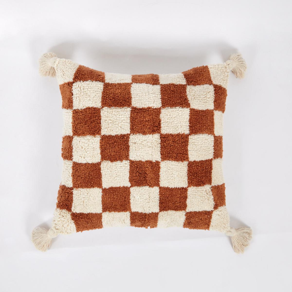 This cushion cover is sure to bring texture and character to your decor. Designed with a trendy checkerboard pattern and finished with tassels, this cushion cover adds a stylish look to any room.